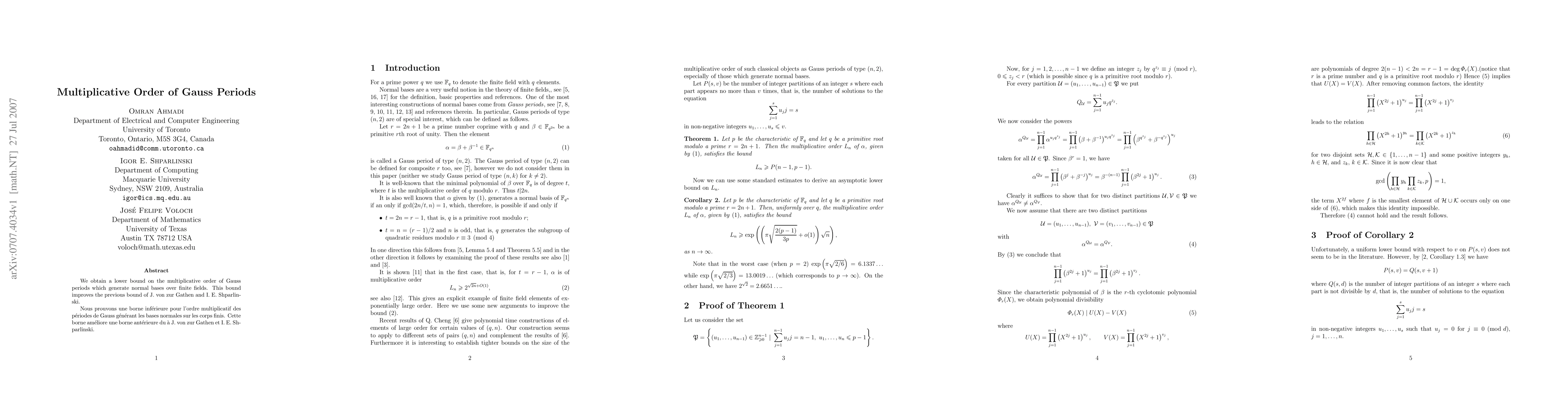 Researchers found a lower bound on the multiplicative order of Gauss periods that generate normal bases over finite fields, improving previous results.