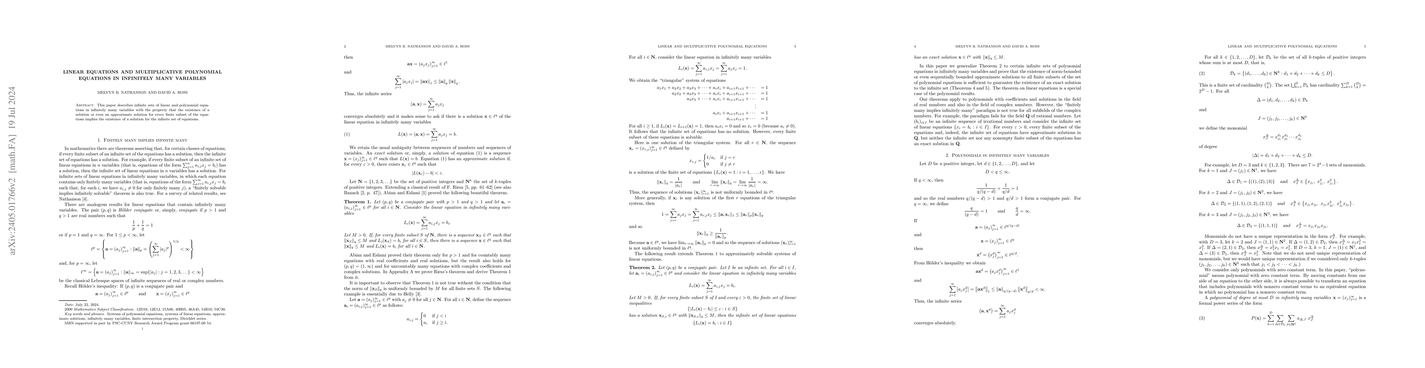 This paper investigates infinite sets of multiplicative polynomial equations across infinitely many variables, demonstrating that solutions to any finite subset of these equations guarantee a solution for the entire infinite set.