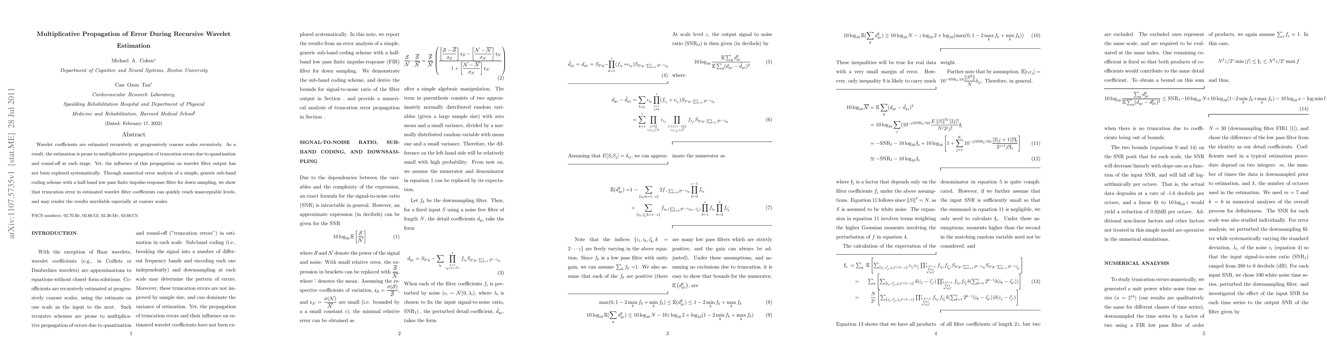 This paper investigates the multiplicative propagation of error during recursive wavelet estimation, demonstrating through numerical analysis that truncation errors from quantization and round-off can escalate rapidly, leading to unreliable results, particularly at coarser scales.