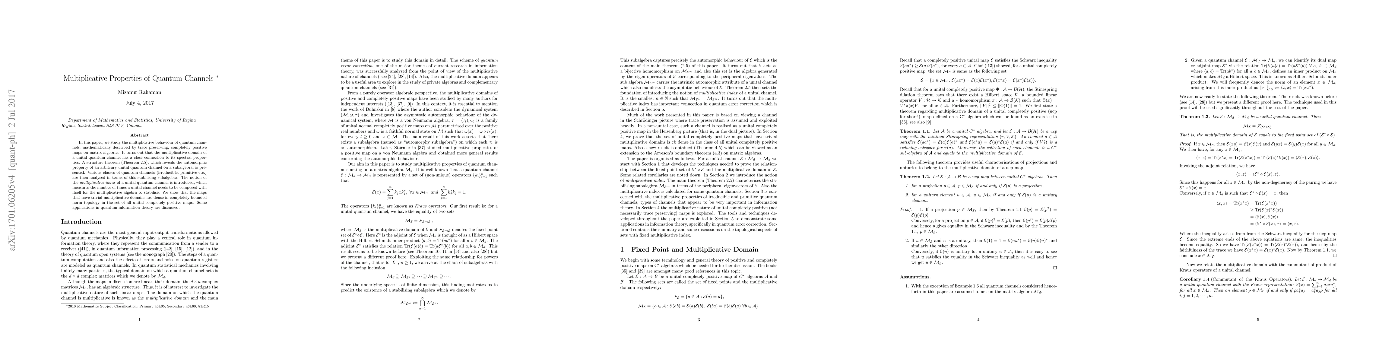 A research paper explores the multiplicative properties of quantum channels, revealing a connection between channel spectral properties and stabilizing subalgebras, with implications for quantum information theory.
