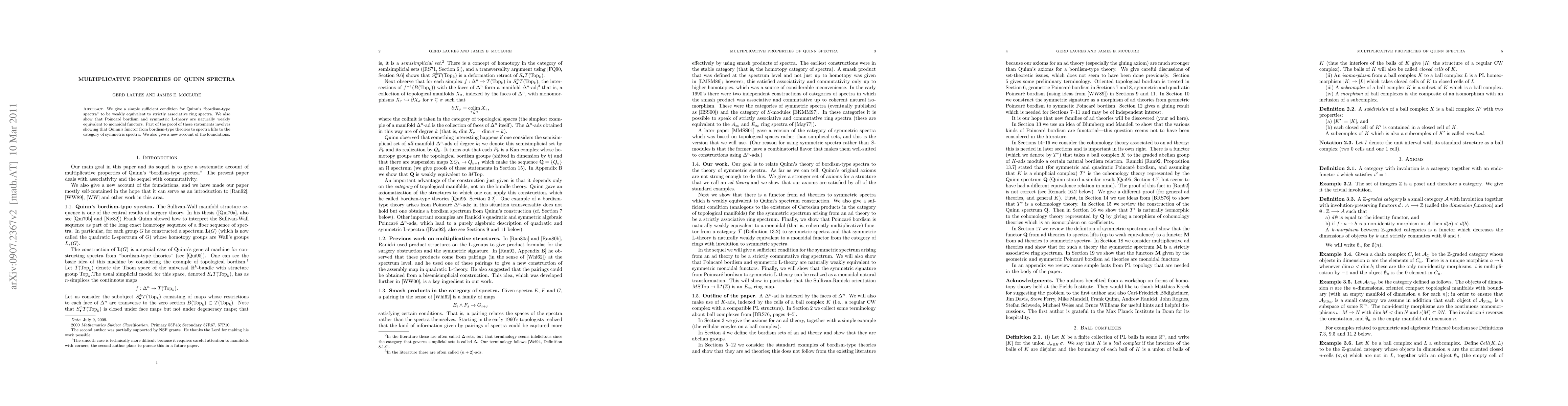 We give a simple sufficient condition for Quinn's "bordism-type spectra" to be weakly equivalent to strictly associative ring spectra. We also show that Poincare bordism and symmetric L-theory are naturally weakly equivalent to monoidal functors. Part of the proof of these statements involves showing that Quinn's functor from bordism-type theories to spectra lifts to the category of symmetric spectra. We also give a new account of the foundations.