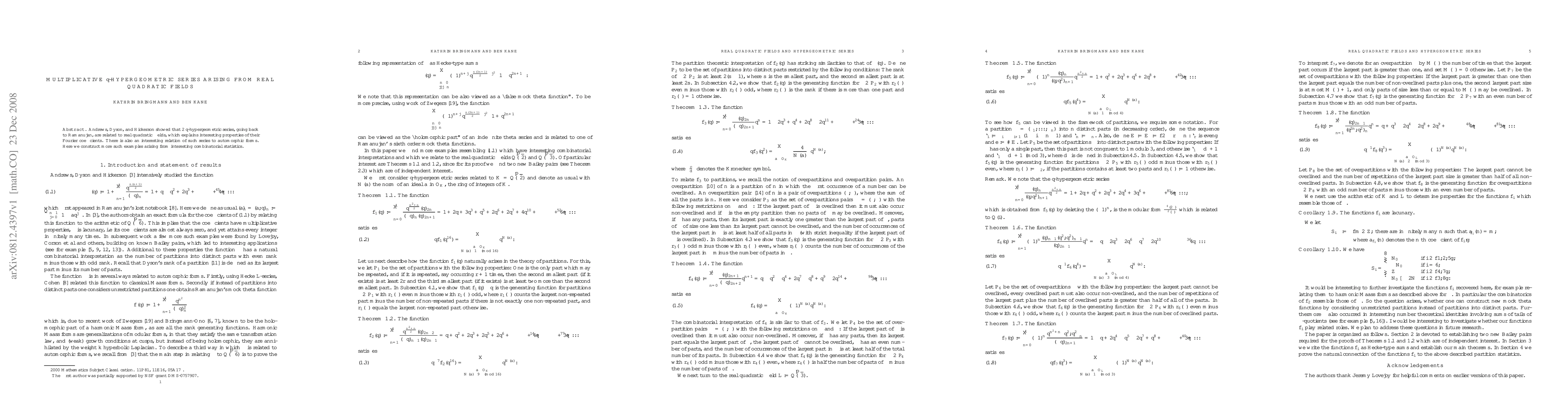 Summary: This paper extends the connection between $q$-hypergeometric series and real quadratic fields, revealing new examples linked to combinatorial statistics and automorphic forms, building on the foundational work of Andrews, Dyson, and Hickerson.