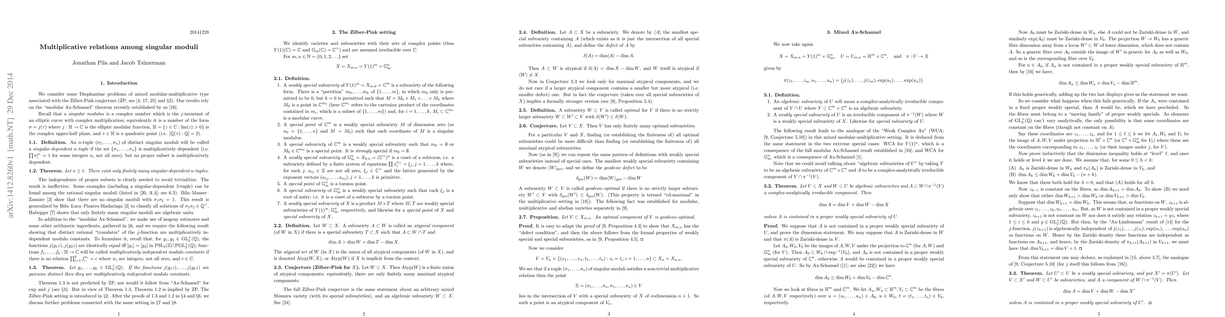 This paper proves a finiteness result regarding multiplicative relations among singular moduli, specifically the j-invariants of elliptic curves with complex multiplication, in the context of Diophantine problems related to the Zilber-Pink conjecture. The findings contribute to understanding the structure of these special numbers.