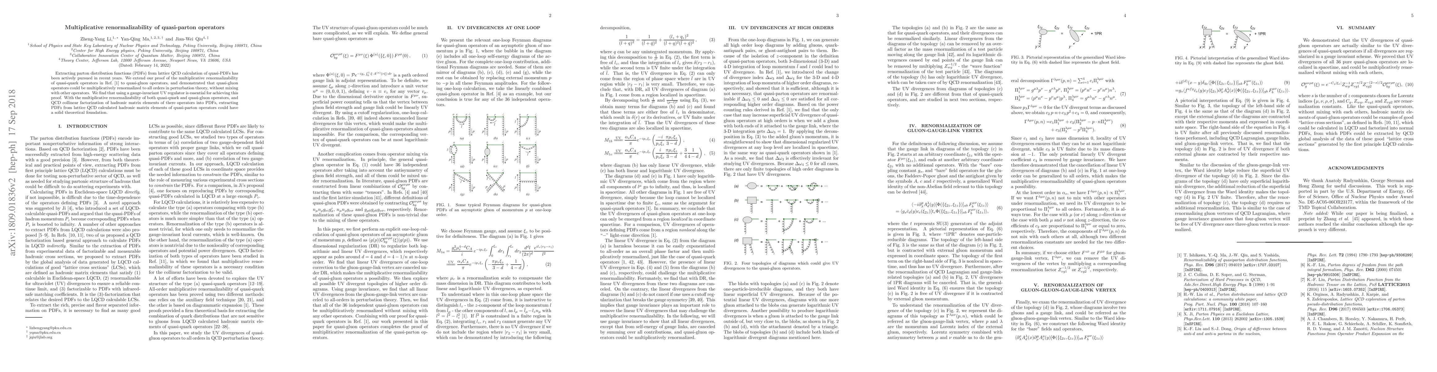 Extracting parton distribution functions (PDFs) from lattice QCD calculation of quasi-PDFs has been actively pursued in recent years. We extend our proof of the multiplicative renormalizability of quasi-quark operators in Ref. [1] to quasi-gluon operators, and demonstrated that quasi-gluon operators could be multiplicatively renormalized to all orders in perturbation theory, without mixing with other operators. We find that using a gauge-invariant UV regulator is essential for achieving this proof. With the multiplicative renormalizability of both quasi-quark and quasi-gluon operators, and QCD collinear factorization of hadronic matrix elements of there operators into PDFs, extracting PDFs from lattice QCD calculated hadronic matrix elements of quasi-parton operators could have a solid theoretical foundation.