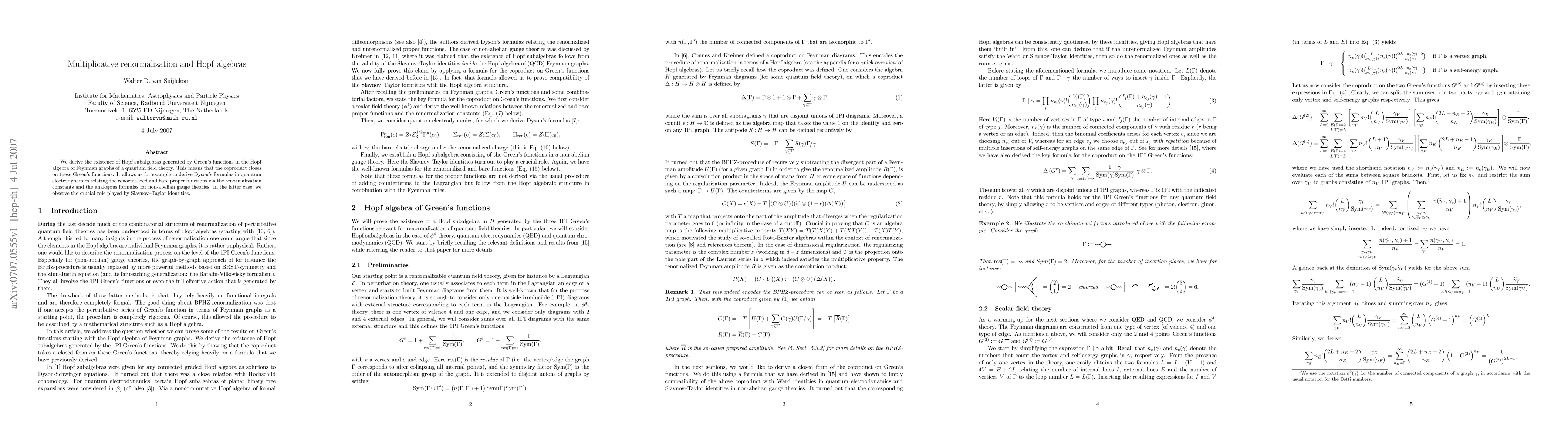 This paper establishes Hopf subalgebras within the Hopf algebra of Feynman graphs, demonstrating that the coproduct is closed on Green's functions. It utilizes this structure to derive Dyson's formulas in quantum electrodynamics and similar results for non-abelian gauge theories, highlighting the importance of Slavnov-Taylor identities.