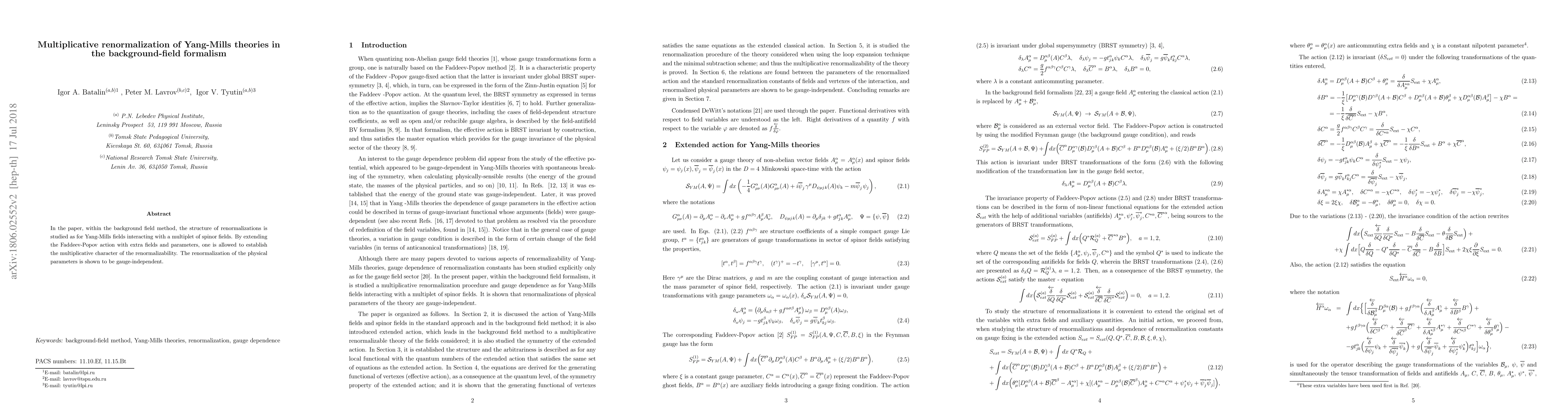 This paper investigates the renormalization structure of Yang-Mills theories interacting with spinor fields, employing the background-field method. It demonstrates the multiplicative renormalizability by extending the Faddeev-Popov action and proves that the renormalization of physical parameters remains gauge-independent.