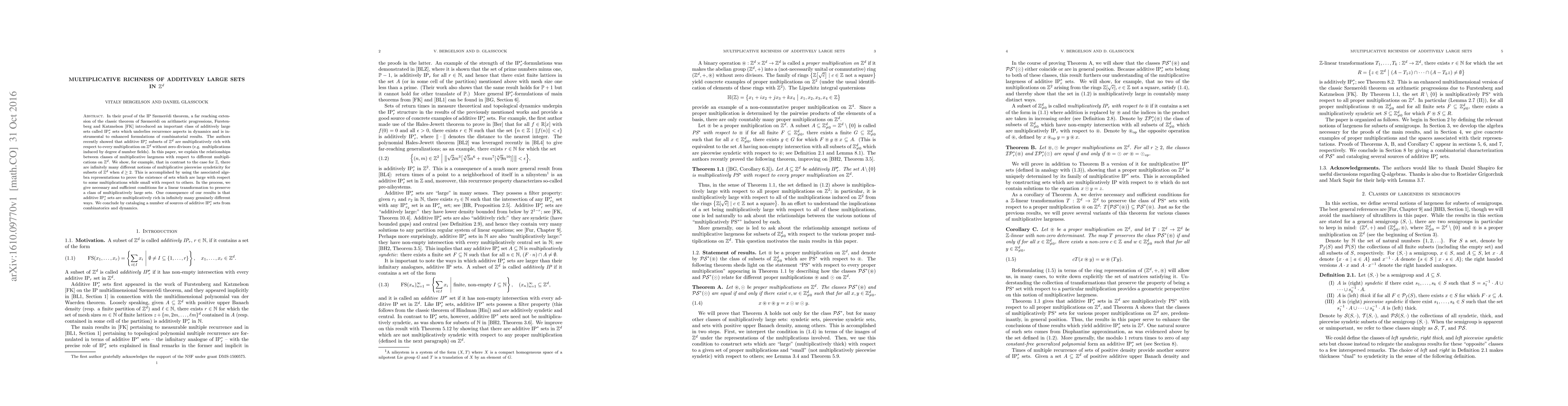 In their proof of the IP Szemer\'edi theorem, a far reaching extension of the classic theorem of Szemer\'edi on arithmetic progressions, Furstenberg and Katznelson introduced an important class of additively large sets called $\text{IP}_{\text{r}}^*$ sets which underlies recurrence aspects in dynamics and is instrumental to enhanced formulations of combinatorial results. The authors recently showed that additive $\text{IP}_{\text{r}}^*$ subsets of $\mathbb{Z}^d$ are multiplicatively rich with respect to every multiplication on $\mathbb{Z}^d$ without zero divisors (e.g. multiplications induced by degree $d$ number fields). In this paper, we explain the relationships between classes of multiplicative largeness with respect to different multiplications on $\mathbb{Z}^d$. We show, for example, that in contrast to the case for $\mathbb{Z}$, there are infinitely many different notions of multiplicative piecewise syndeticity for subsets of $\mathbb{Z}^d$ when $d \geq 2$. This is accomplished by using the associated algebra representations to prove the existence of sets which are large with respect to some multiplications while small with respect to others. In the process, we give necessary and sufficient conditions for a linear transformation to preserve a class of multiplicatively large sets. One consequence of our results is that additive $\text{IP}_{\text{r}}^*$ sets are multiplicatively rich in infinitely many genuinely different ways. We conclude by cataloging a number of sources of additive $\text{IP}_{\text{r}}^*$ sets from combinatorics and dynamics.