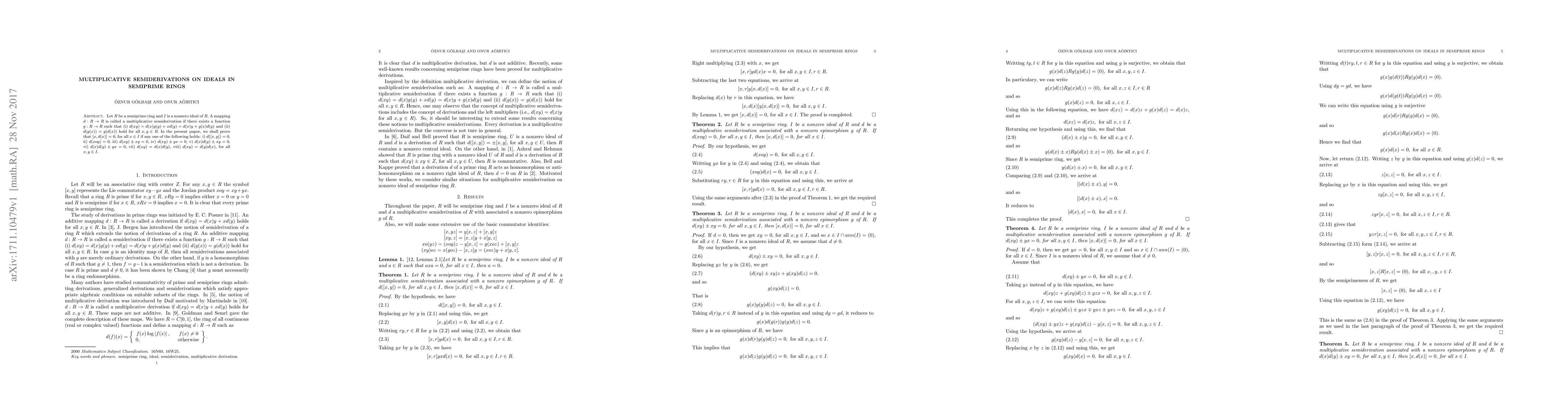 This paper introduces multiplicative semiderivation on ideals in semiprime rings, exploring its commutativity under specific conditions. It investigates the properties of these derivations on nonzero ideals and their implications for ring structures.