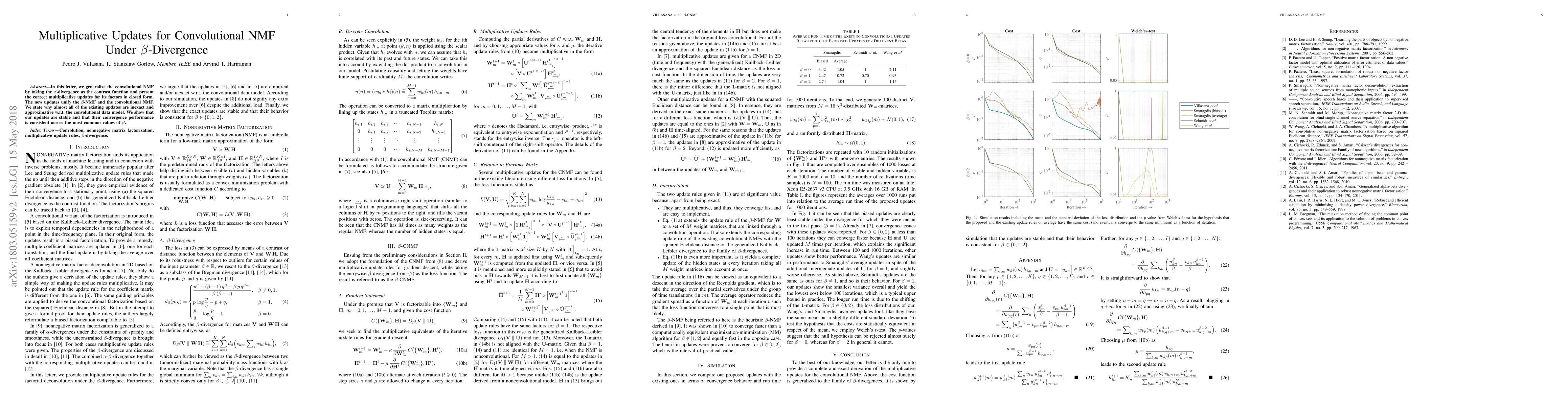 This paper generalizes convolutional non-negative matrix factorization (NMF) using $\beta$-divergence, presenting exact multiplicative updates in closed form. It clarifies that previous updates were inaccurate and demonstrates the stability and consistent convergence of the new method across common $\beta$ values.