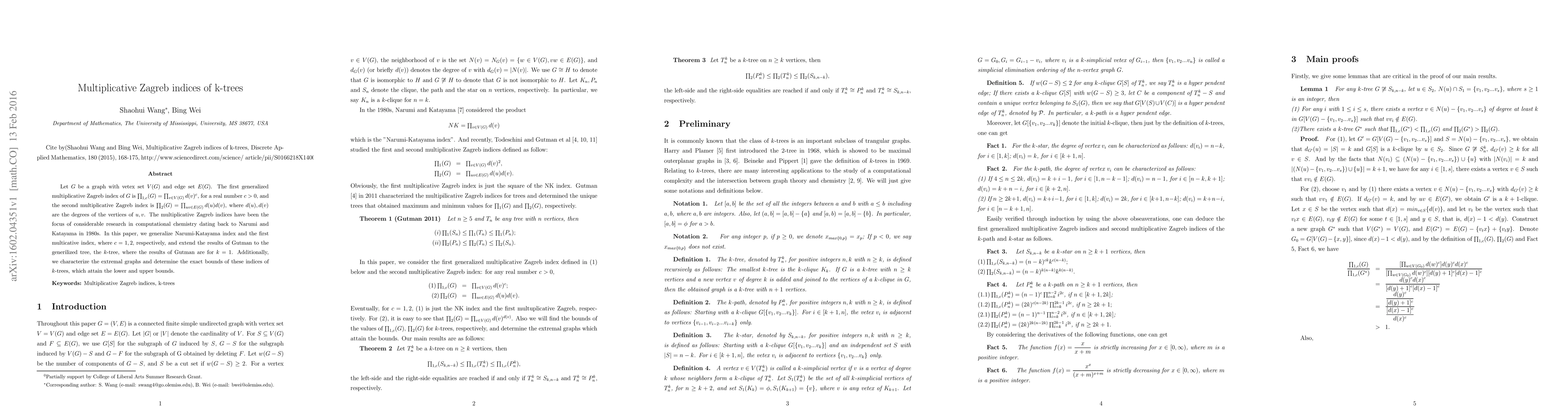 This paper generalizes the first and second multiplicative Zagreb indices for k-trees, extending Gutman's results to higher k-values. It characterizes extremal k-trees and determines the exact bounds for these indices.