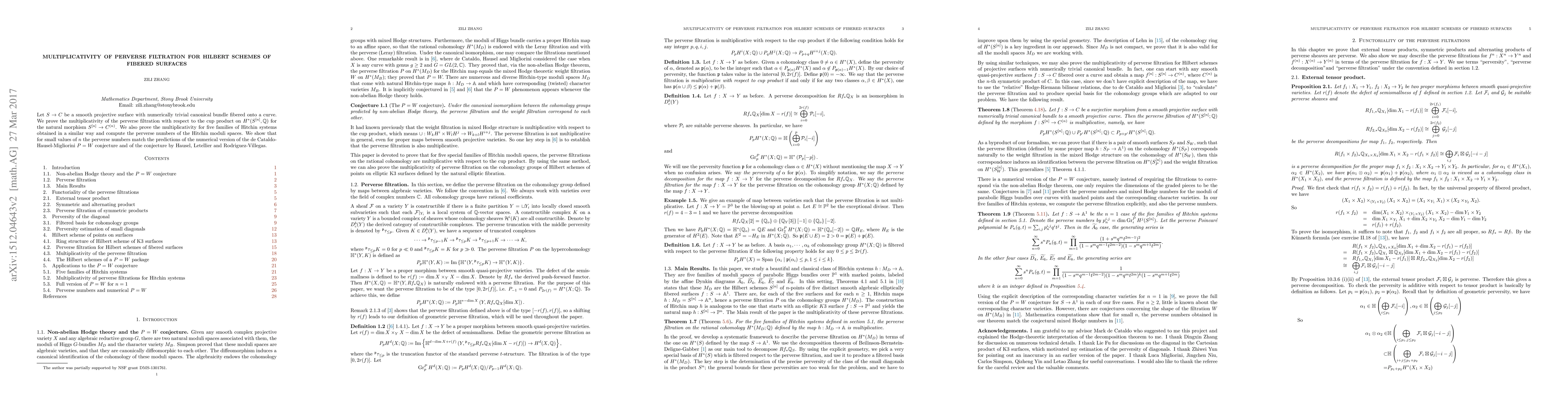 This paper proves the multiplicativity of the perverse filtration concerning the cup product on the cohomology of Hilbert schemes of fibered surfaces, extending this result to five families of Hitchin systems. It also verifies that the perverse numbers align with predictions from the $P=W$ conjecture and related conjectures for small $n$.