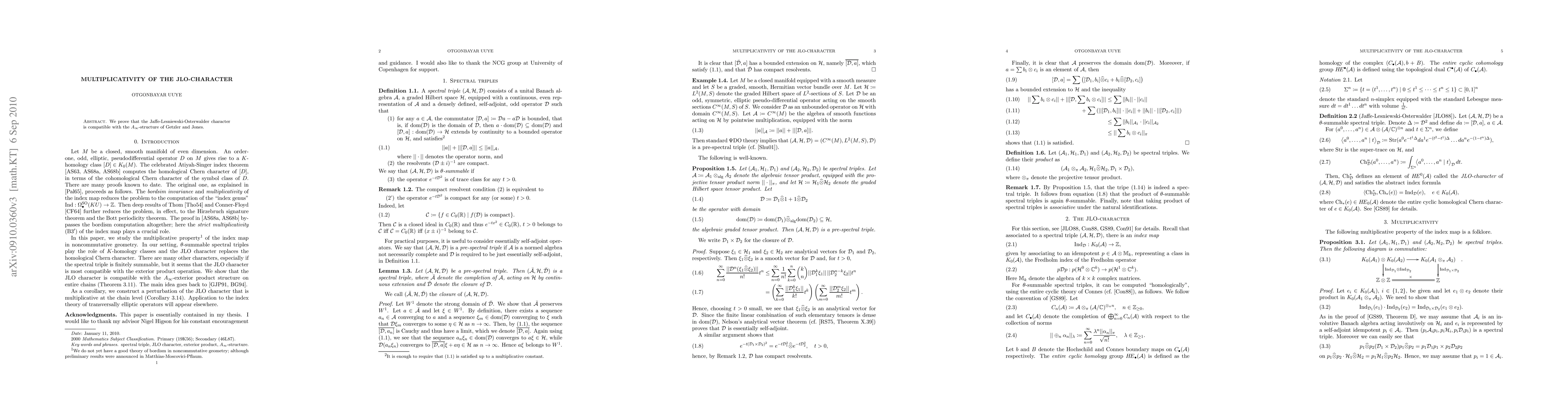 We prove that the Jaffe-Lesniewski-Osterwalder character is compatible with the $A_{\infty}$-structure of Getzler and Jones.