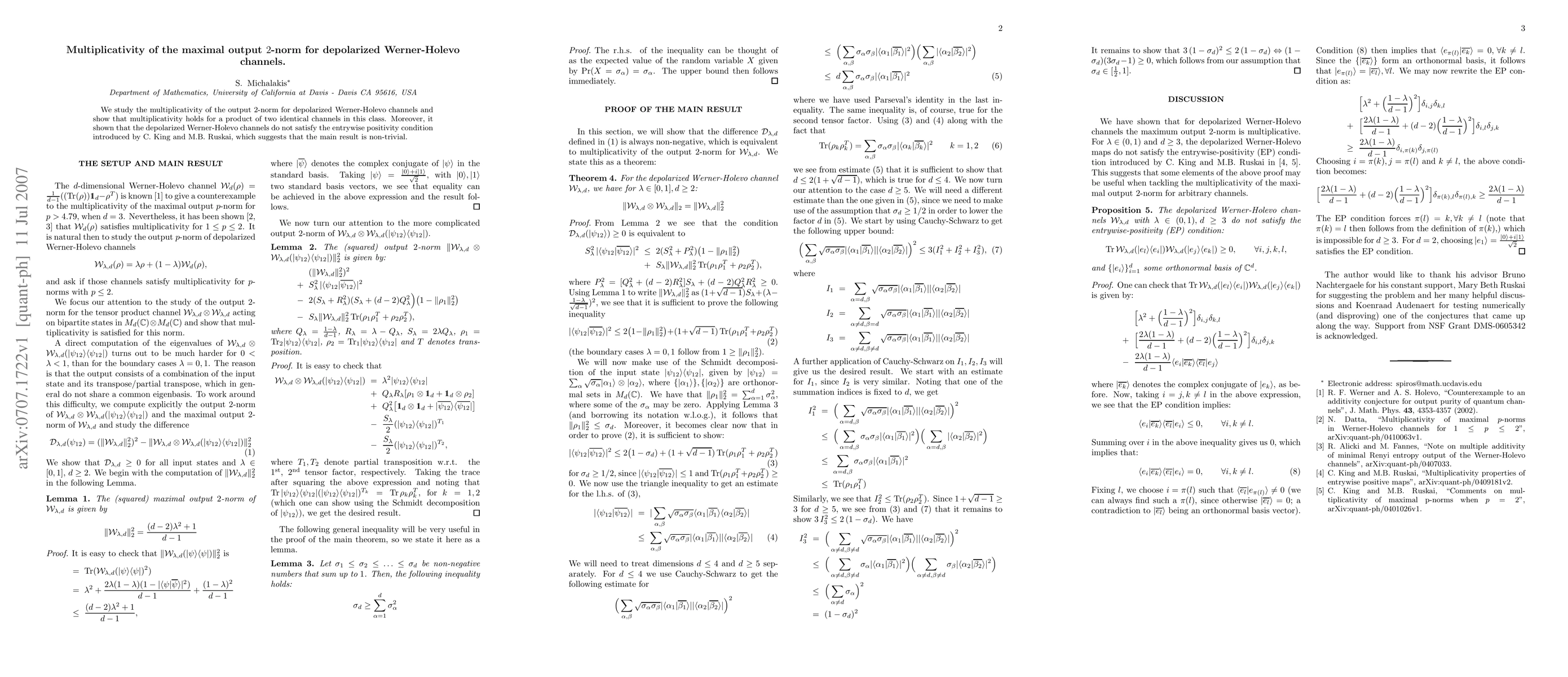 This paper investigates the multiplicativity of the maximal output 2-norm for depolarized Werner-Holevo channels, proving that it holds for a product of two identical channels. It also demonstrates that these channels fail to meet the entrywise positivity condition, highlighting the non-trivial nature of the main result.