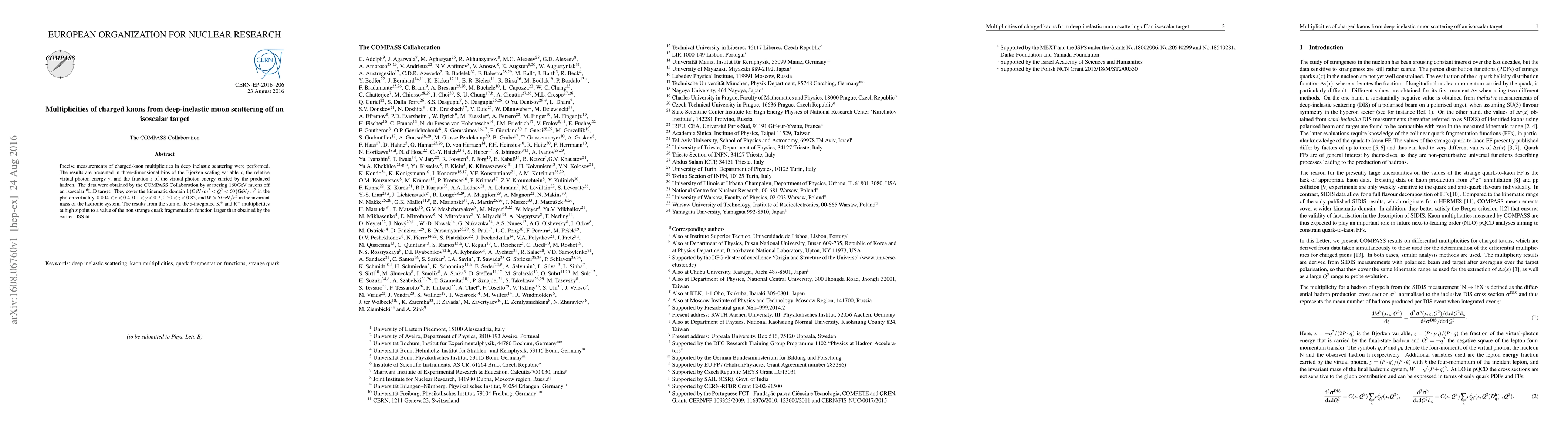 This paper reports precise measurements of charged-kaon multiplicities from deep inelastic muon scattering off an isoscalar 6LiD target, revealing a higher non-strange quark fragmentation function compared to earlier DSS fits. The data cover a wide range of kinematic variables and were obtained by the COMPASS Collaboration.
