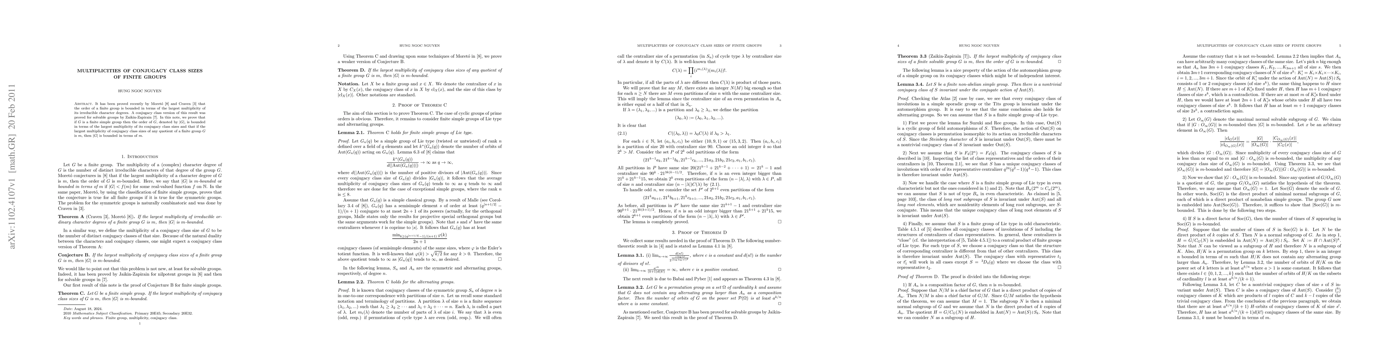 This paper proves that the order of a finite simple group is bounded by the largest multiplicity of its conjugacy class sizes. Additionally, it shows that the order of any finite group is also bounded by the largest multiplicity of the sizes of conjugacy classes in its quotients.