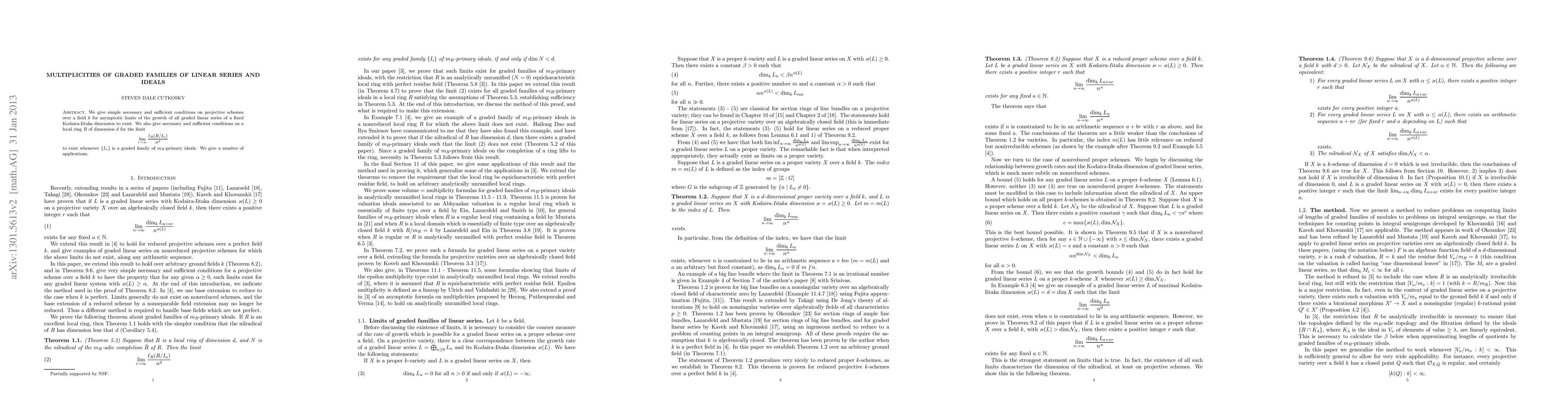We give simple necessary and sufficient conditions on projective schemes over a field k for asymptotic limits of the growth of all graded linear series of a fixed Kodaira-Iitaka dimension to exist. We also give necessary and sufficient conditions on a local ring R of dimension d for the limit \lim_{i\rightarrow\infty}\frac{\ell_R(R/I_n)}{n^d} to exist whenever \{I_n\} is a graded family of m_R-primary ideals. We give a number of applications.
