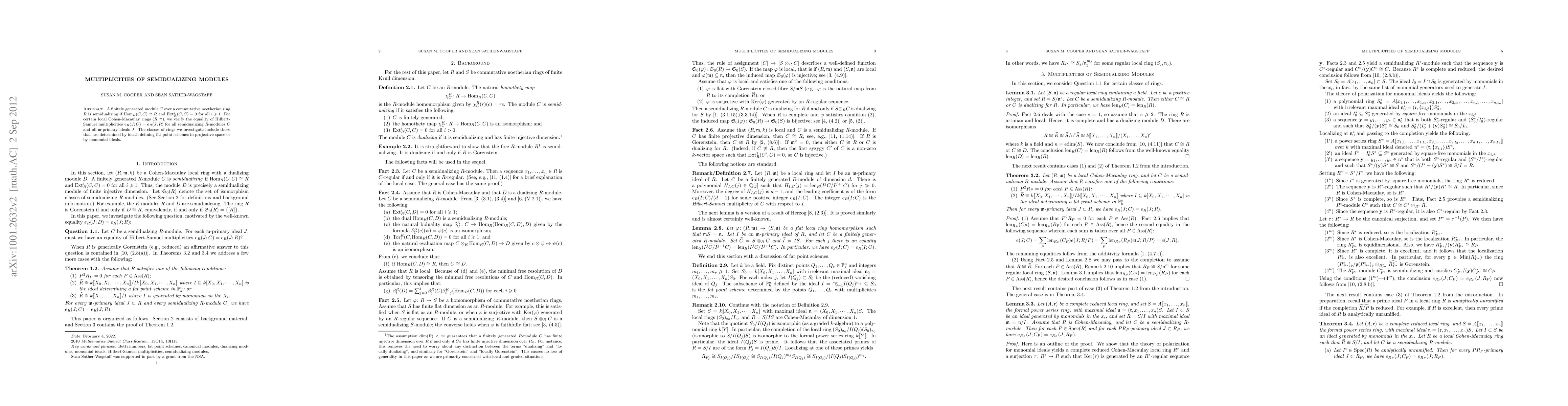 This paper explores the properties of semidualizing modules over commutative Noetherian rings, specifically verifying the equality of Hilbert-Samuel multiplicities for certain local Cohen-Macaulay rings and their semidualizing modules concerning m-primary ideals. The study focuses on rings defined by fat point schemes or monomial ideals.