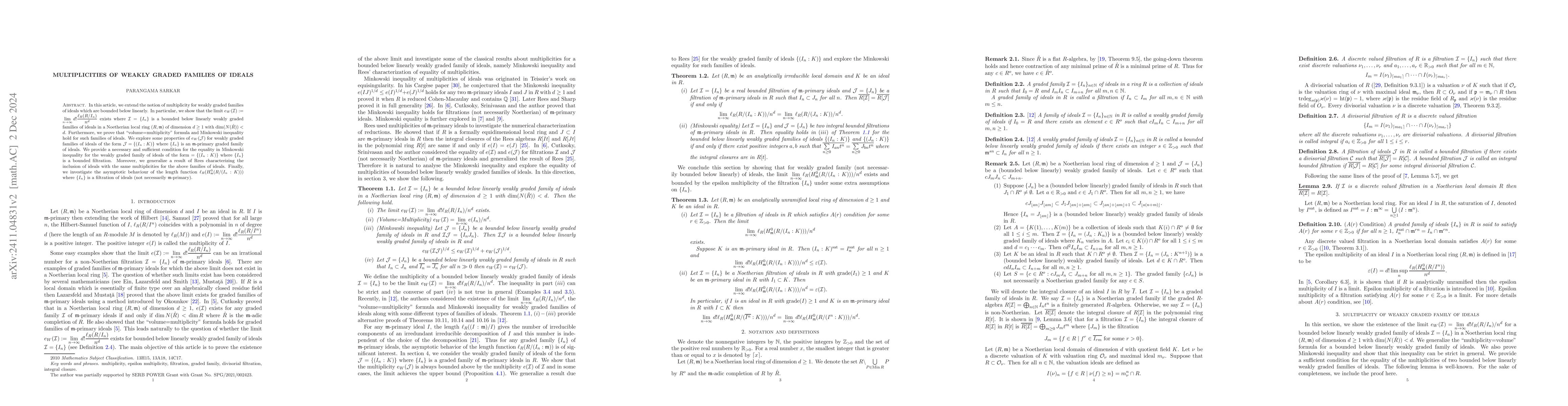 This paper extends the concept of multiplicity to weakly graded families of ideals in Noetherian local rings, demonstrating the existence of a limit for these multiplicities and proving that the "volume equals multiplicity" formula and Minkowski inequality apply. It also investigates conditions for equality in the Minkowski inequality and generalizes a result on the inclusion of ideals with identical multiplicities.
