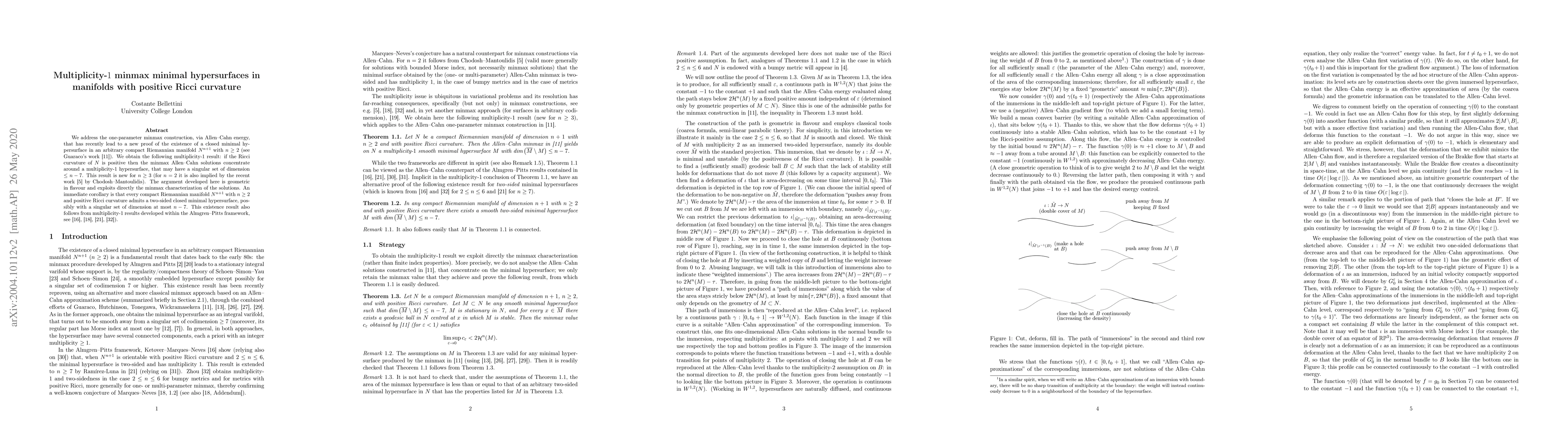 We address the one-parameter minmax construction, via Allen--Cahn energy, that has recently lead to a new proof of the existence of a closed minimal hypersurface in an arbitrary compact Riemannian manifold $N^{n+1}$ with $n\geq 2$ (see Guaraco's 2018 work). We obtain the following multiplicity-$1$ result: if the Ricci curvature of $N$ is positive then the minmax Allen--Cahn solutions concentrate around a multiplicity-$1$ hypersurface, that may have a singular set of dimension $\leq n-7$. This result is new for $n\geq 3$ (for $n=2$ it is also implied by the recent work by Chodosh--Mantoulidis). The argument developed here is geometric in flavour and exploits directly the minmax characterization of the solutions. An immediate corollary is that every compact Riemannian manifold $N^{n+1}$ with $n\geq 2$ and positive Ricci curvature admits a two-sided closed minimal hypersurface, possibly with a singular set of dimension at most $n-7$. This existence result also follows from multiplicity-$1$ results developed within the Almgren--Pitts framework, see works by Ketover-Marques-Neves, Zhou, Marques-Neves, Ramirez-Luna.