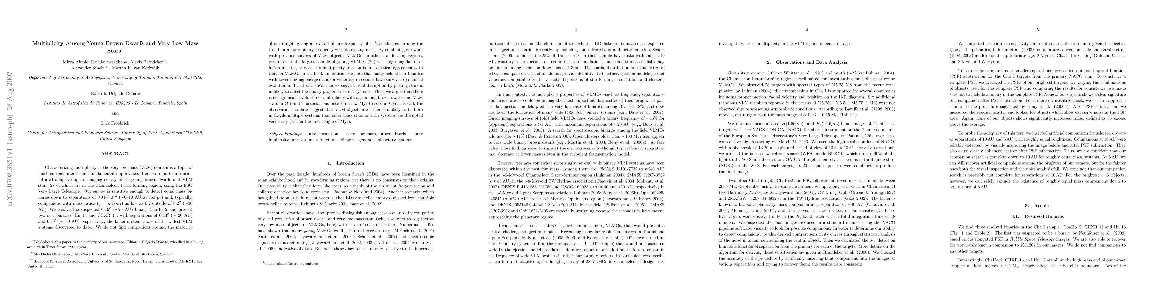 The research employed near-IR AO imaging with the ESO VLT to survey 31 young brown dwarfs and VLM stars in Chamaeleon I, sensitive to detecting binaries with mass ratios as low as 0.2 outside 0.2" (~30 AU).