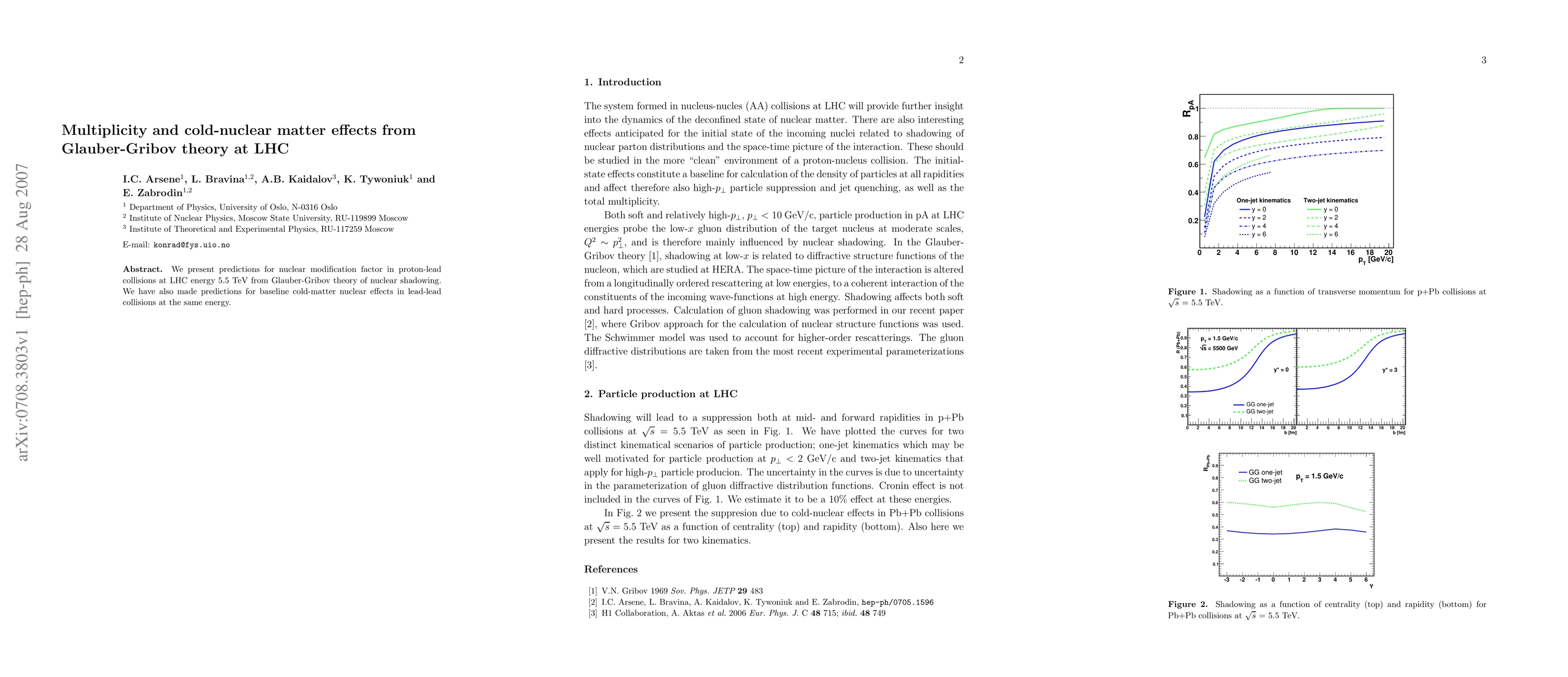 We present predictions for nuclear modification factor in proton-lead collisions at LHC energy 5.5 TeV from Glauber-Gribov theory of nuclear shadowing. We have also made predictions for baseline cold-matter nuclear effects in lead-lead collisions at the same energy.