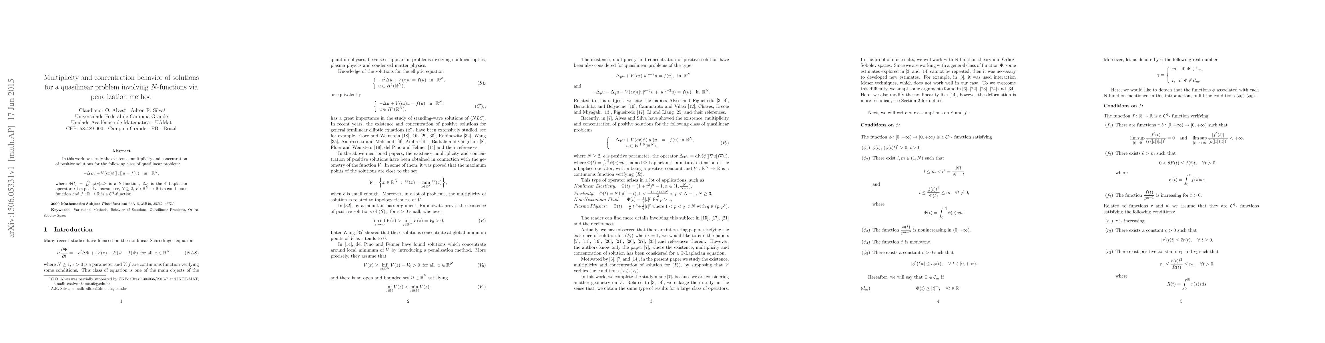 In this work, we study the existence, multiplicity and concentration of positive solutions for the following class of quasilinear problem: \[ - \Delta_{\Phi}u + V(\epsilon x)\phi(\vert u\vert)u = f(u)\quad \mbox{in} \quad \mathbb{R}^{N}, \] where $\Phi(t) = \int_{0}^{\vert t\vert}\phi(s)sds$ is a N-function, $ \Delta_{\Phi}$ is the $\Phi$-Laplacian operator, $\epsilon$ is a positive parameter, $ N\geq 2$, $V : \mathbb{R}^{N} \rightarrow \mathbb{R} $ is a continuous function and $f : \mathbb{R} \rightarrow \mathbb{R} $ is a $C^{1}$-function.