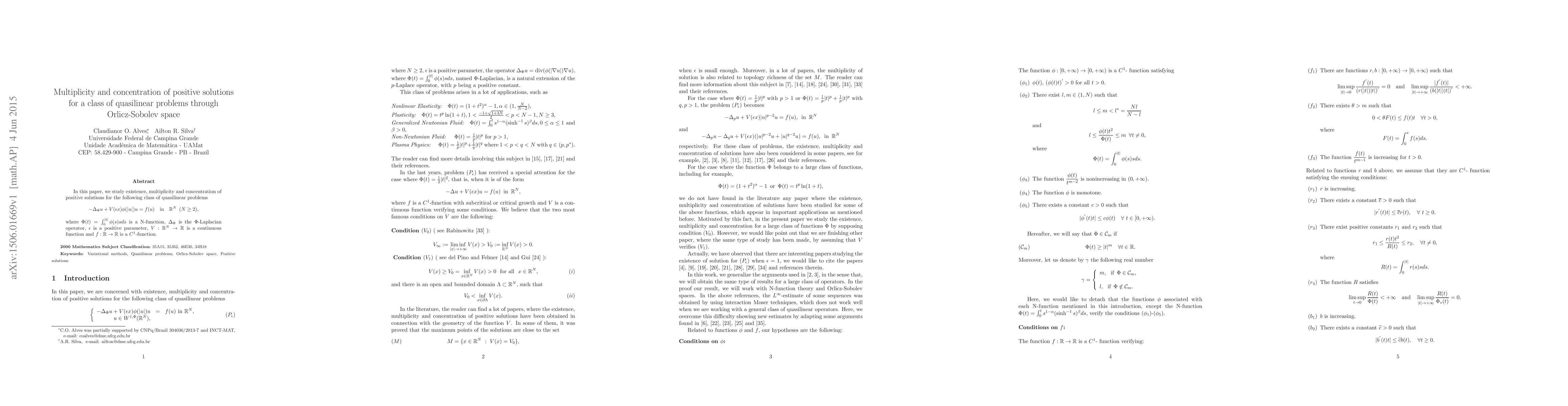 This paper investigates the existence, multiplicity, and concentration of positive solutions for quasilinear problems in Orlicz-Sobolev spaces, focusing on the equation \[ - \Delta_{\Phi}u + V(\epsilon x)\phi(\vert u\vert)u = f(u) \quad \mbox{in} \quad \mathbb{R}^{N} \,\,\,\, ( N\geq 2 ). \] The study employs the $\Phi$-Laplacian operator and explores the effects of varying parameters and functions.
