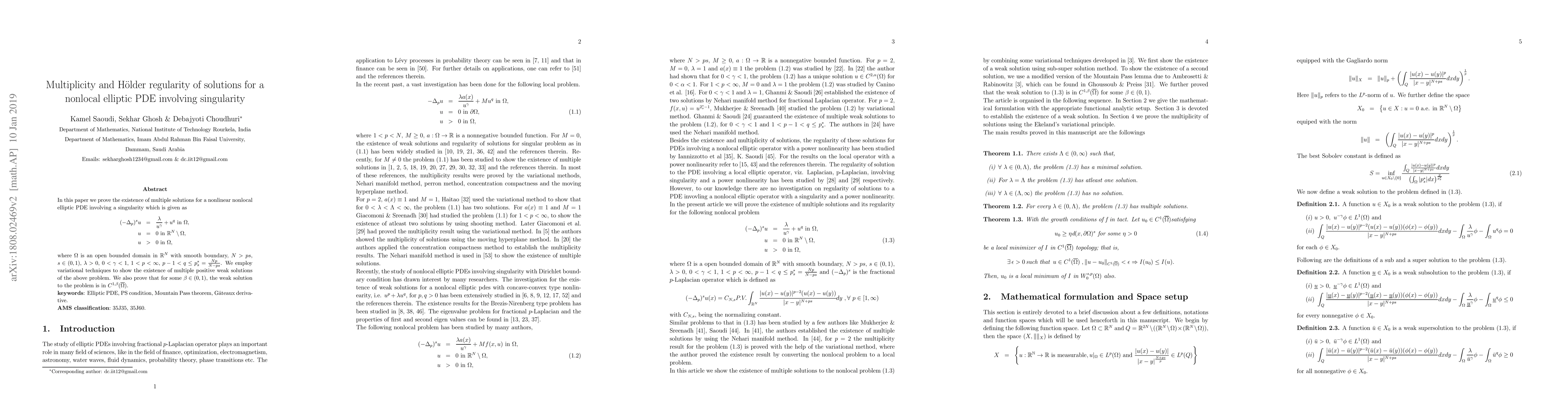 This paper demonstrates the existence of multiple positive weak solutions for a nonlinear nonlocal elliptic PDE with a singularity. Additionally, the authors prove Hölder regularity for the solutions in the domain.