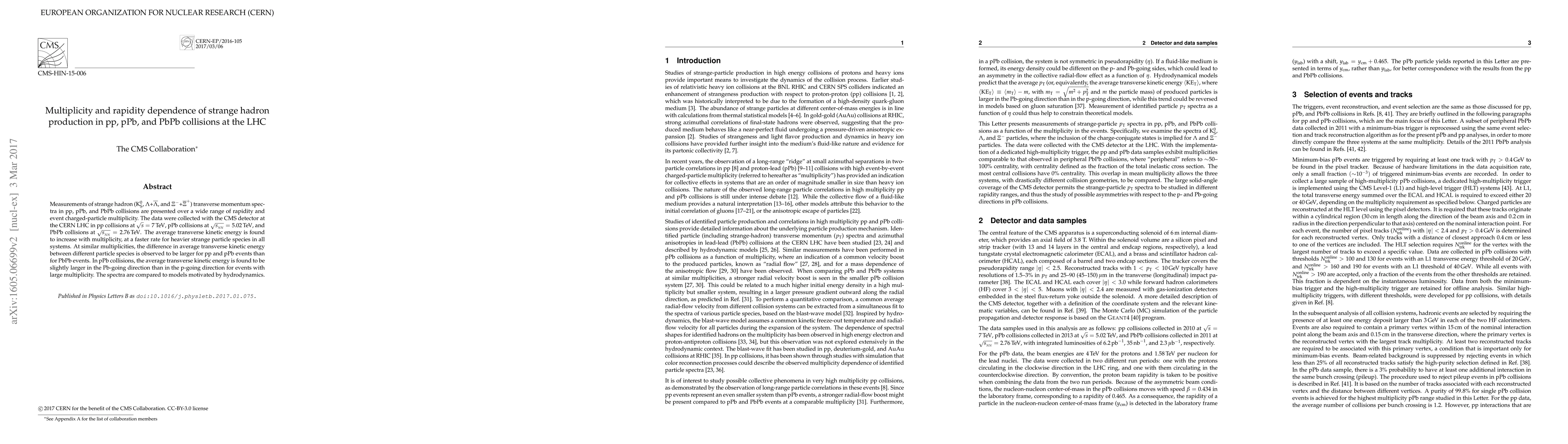 This paper presents measurements of strange hadron production in various collision types at the LHC, showing that average transverse kinetic energy increases with event multiplicity, especially for heavier particles, and varies between collision systems. The data is compared to hydrodynamic models.
