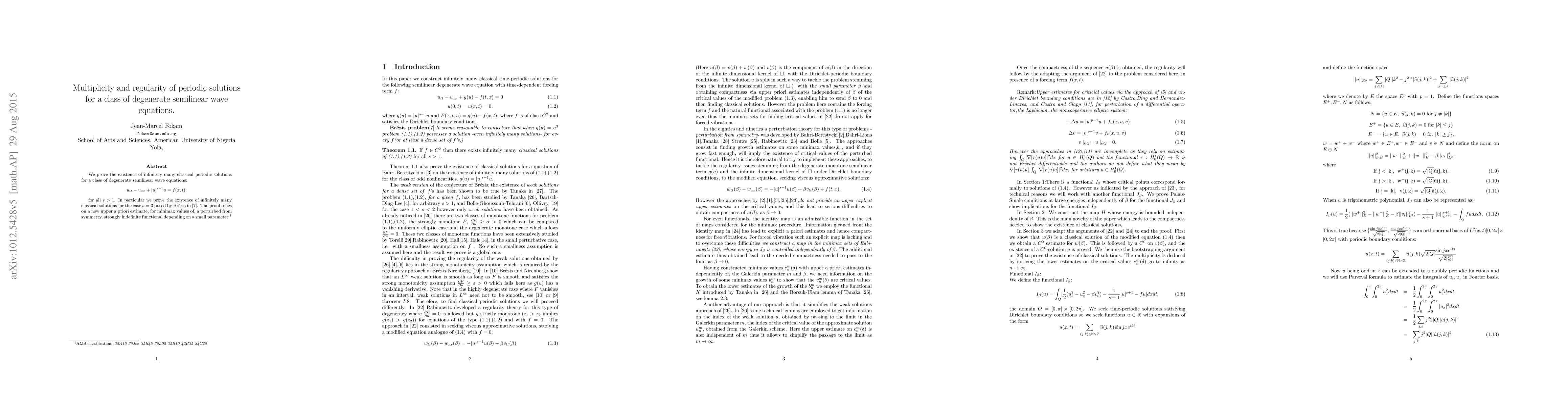 The paper introduces new upper a priori estimates for minimax values of a perturbed functional, enabling the proof of multiplicity of periodic solutions for a class of degenerate semilinear wave equations.