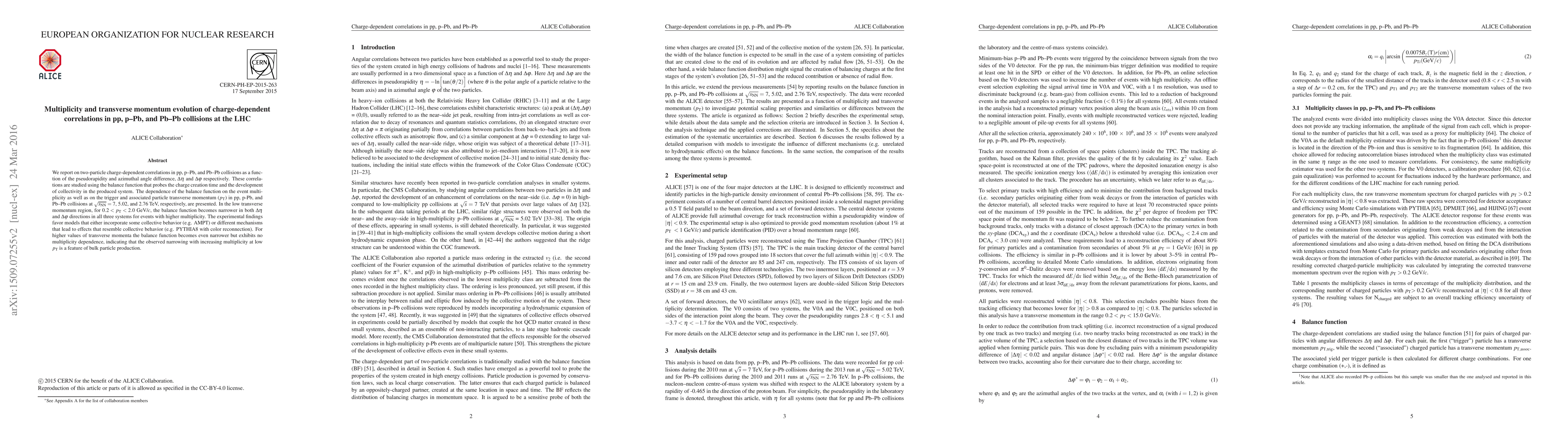 This paper investigates charge-dependent correlations in pp, p-Pb, and Pb-Pb collisions at the LHC, revealing that the balance function narrows in low transverse momentum regions for higher multiplicity events, suggesting collective behavior. At higher transverse momenta, the balance function narrows further but shows no multiplicity dependence, indicating bulk particle production effects.