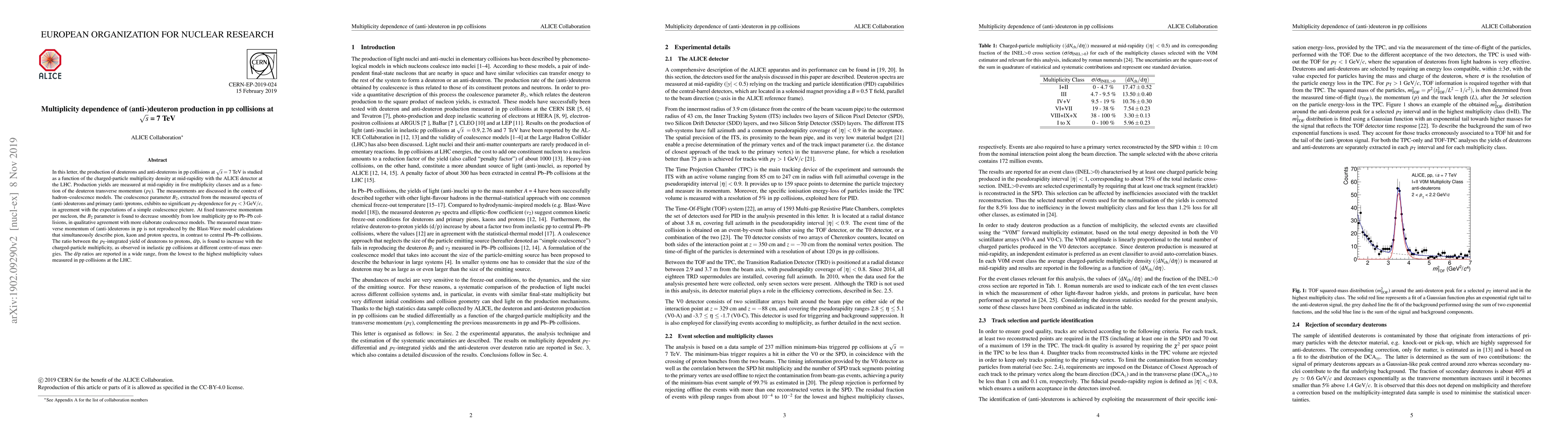 This study investigates the production of deuterons and anti-deuterons in proton-proton collisions at 7 TeV using the ALICE detector, finding no significant transverse momentum dependence for coalescence parameters. The d/p ratio increases with charged-particle multiplicity, challenging Blast-Wave model predictions.