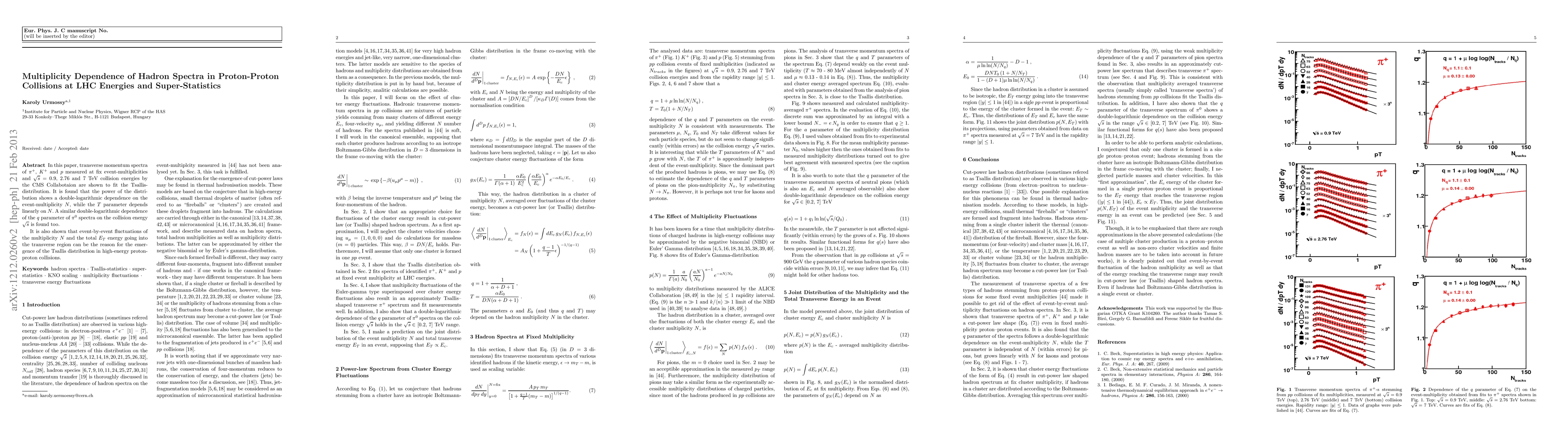 In this paper, transverse momentum spectra of pi+, K+ and p measured at fix event-multiplicities and \sqrt s = 0.9, 2.76 and 7 TeV collision energies by the CMS Collabotaion are shown to fit the Tsallis-distribution. It is found that the power of the distribution shows a double-logarithmic dependence on the event-multiplicity N, while the T parameter depends linearly on N. A similar double-logarithmic dependence of the q parameter of pi0 spectra on the collision energy \sqrt{s} is found too. It is also shown that event-by-event fluctuations of the multiplicity N and the total E_T energy going into the transverse region can be the reason for the emergence of the Tsallis distribution in high-energy proton-proton collisions.