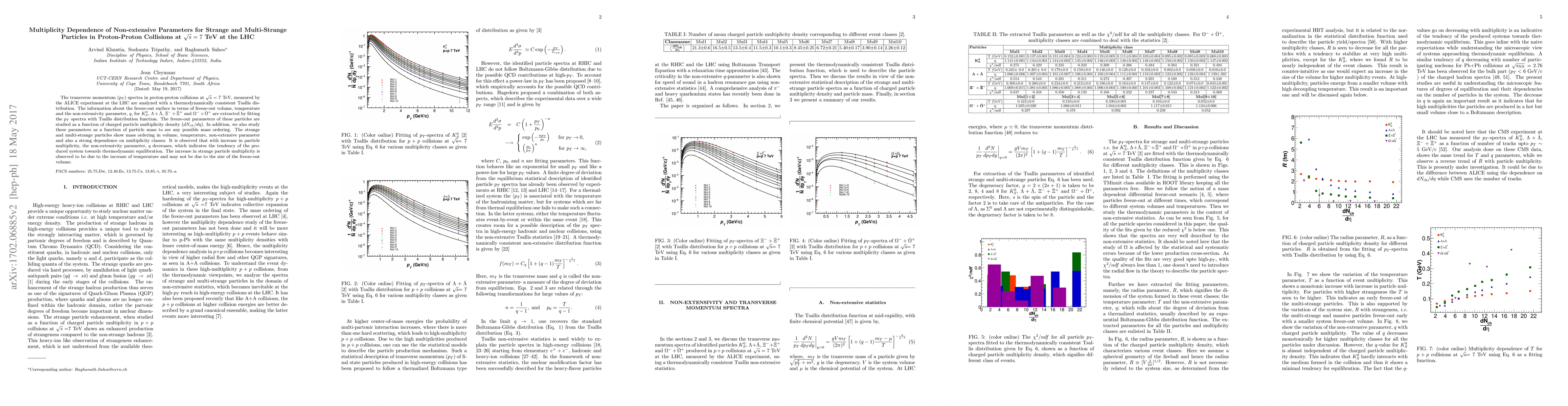 The transverse momentum ($p_{\rm T}$) spectra in proton-proton collisions at $\sqrt{s}$ = 7 TeV, measured by the ALICE experiment at the LHC are analyzed with a thermodynamically consistent Tsallis distribution. The information about the freeze-out surface in terms of freeze-out volume, temperature and the non-extenisivity parameter, $q$, for $K^{0}_{S}$, $\Lambda+\bar{\Lambda}$, $\Xi^{-}+\bar{\Xi}^{+}$ and $\Omega^{-}+\bar{\Omega}^{+}$ are extracted by fitting the $p_{\rm T}$ spectra with Tsallis distribution function. The freeze-out parameters of these particles are studied as a function of charged particle multiplicity density ($dN_{ch}/d\eta$). In addition, we also study these parameters as a function of particle mass to see any possible mass ordering. The strange and multi-strange particles show mass ordering in volume, temperature, non-extensive parameter and also a strong dependence on multiplicity classes. It is observed that with increase in particle multiplicity, the non-extensivity parameter, $q$ decreases, which indicates the tendency of the produced system towards thermodynamic equilibration. The increase in strange particle multiplicity is observed to be due to the increase of temperature and not to the size of the freeze-out volume.