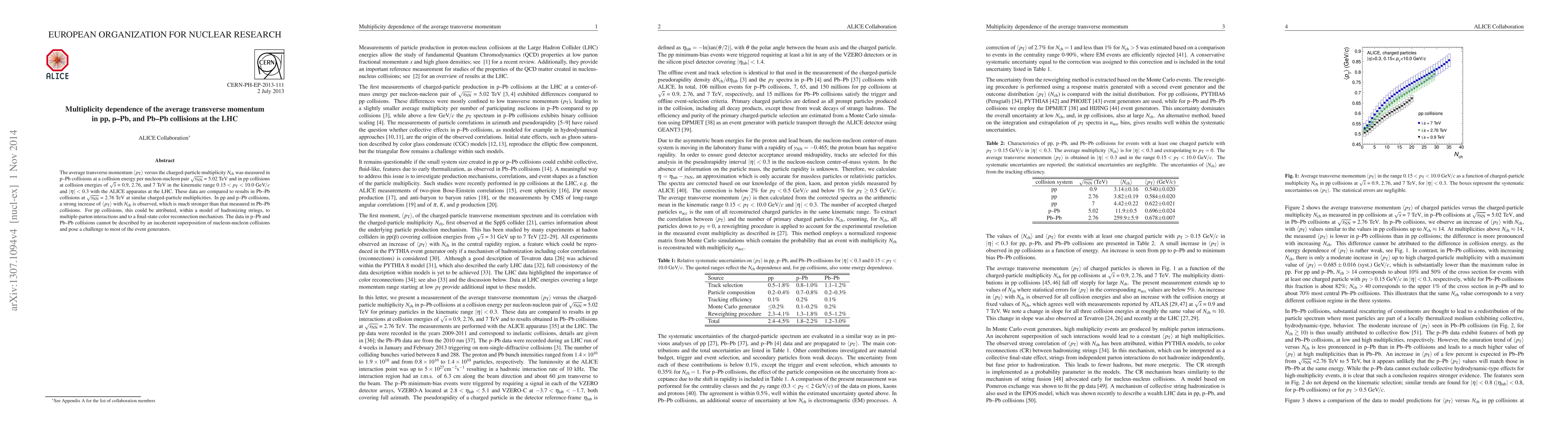 This paper measures the average transverse momentum $\langle p_{\rm T}\rangle$ in pp, p-Pb, and Pb-Pb collisions at various energies, finding a strong increase with charged-particle multiplicity $N_{\rm ch}$ in pp and p-Pb collisions, contrasting sharply with Pb-Pb collisions. The results challenge existing event generators.
