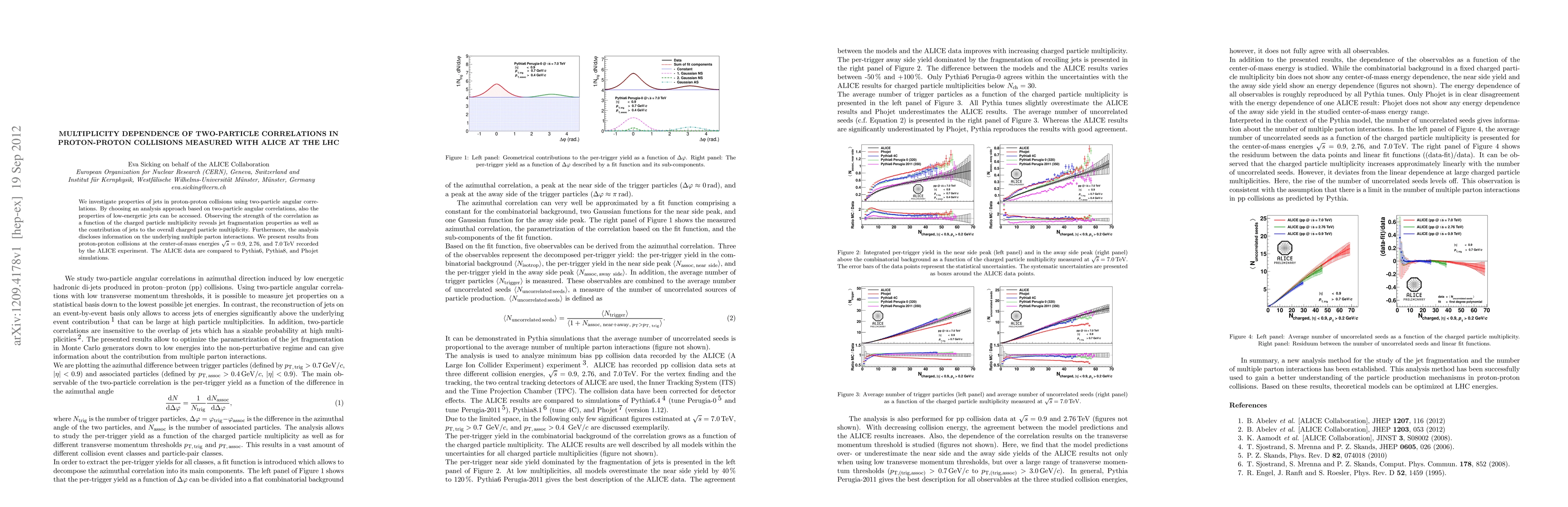 This study examines jet properties in proton-proton collisions via two-particle angular correlations, revealing jet fragmentation and multiplicity dependence. Results from the ALICE experiment at various energies are compared to theoretical simulations to understand underlying parton interactions.