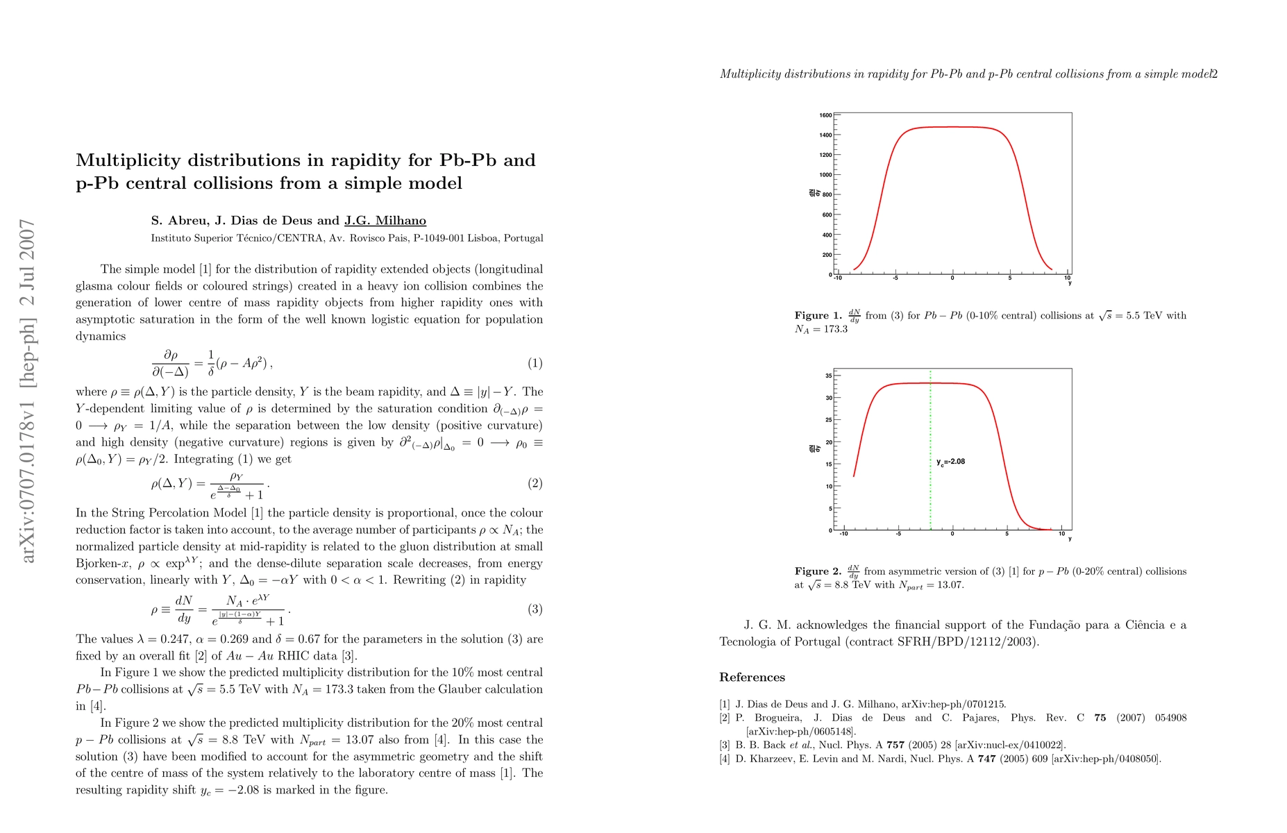 We present predictions, from a simple model, for multiplicity distributions in rapidity for Pb-Pb and p-Pb central collisions at the LHC.