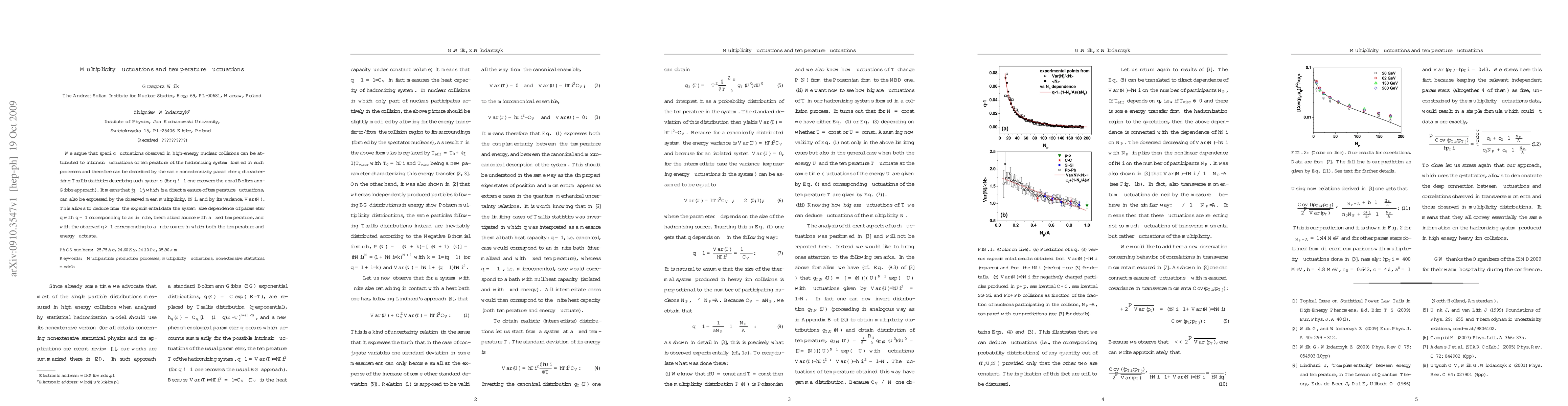 This paper links multiplicity fluctuations in high-energy nuclear collisions to intrinsic temperature fluctuations in the hadronizing system, describing them using Tsallis statistics. The nonextensivity parameter $q$ characterizes these fluctuations, with $q \to 1$ reverting to the standard Boltzmann-Gibbs model.