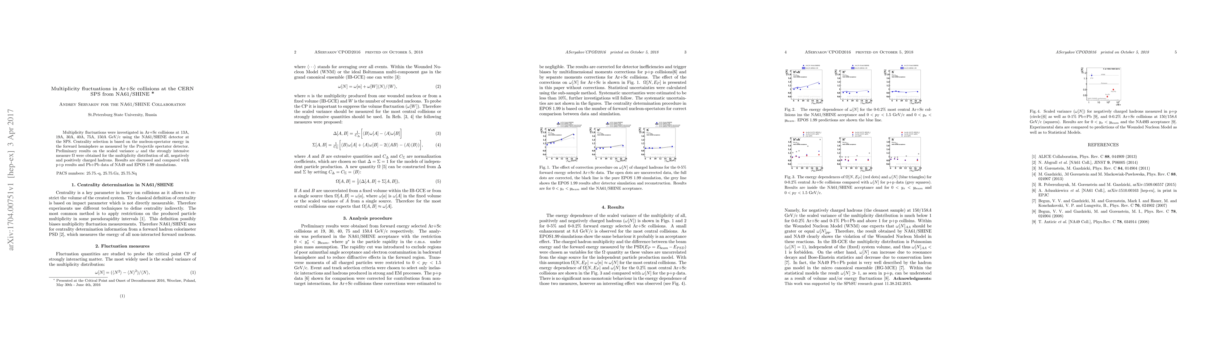 This paper investigates multiplicity fluctuations in Ar+Sc collisions at various energies using the NA61/SHINE detector, focusing on the scaled variance and strongly intensive measure of hadron distributions. Preliminary results are compared with proton-proton data and heavy-ion collision simulations.