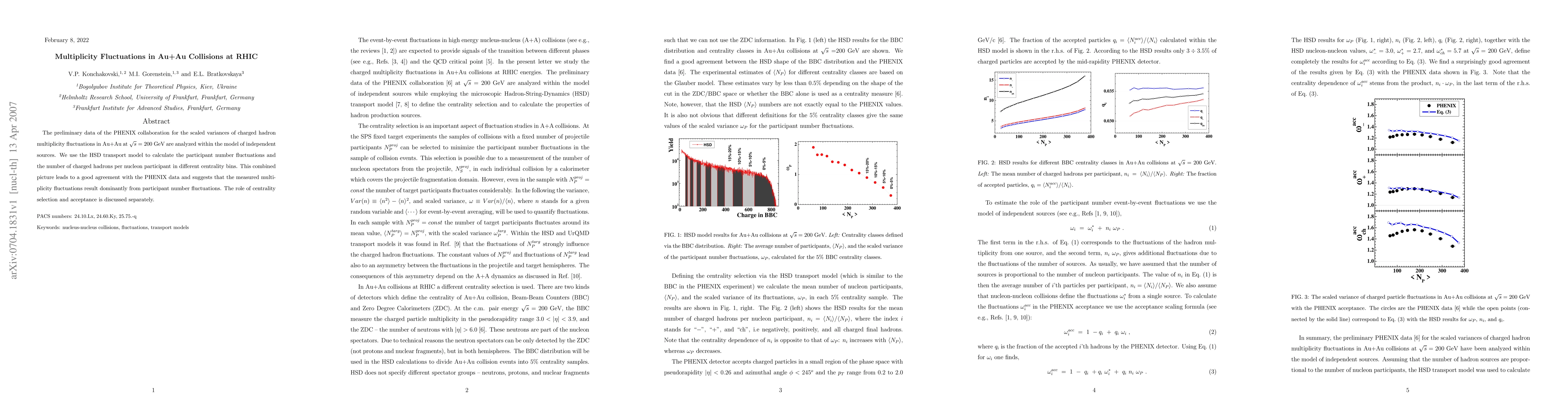 Preliminary data from RHIC collisions show that multiplicity fluctuations in Au+Au collisions at 200 GeV primarily result from variations in participant number, with good agreement with PHENIX data.