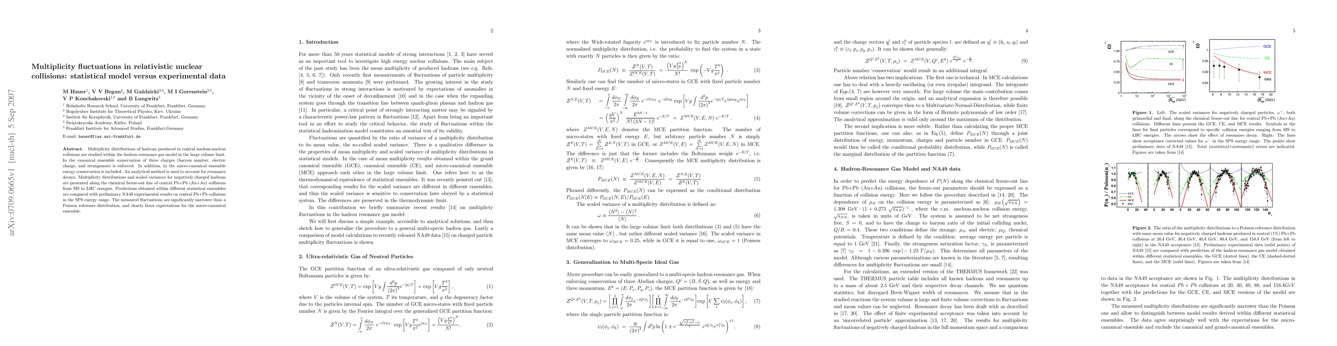 This paper studies multiplicity distributions of hadrons in relativistic nuclear collisions using the hadron-resonance gas model, comparing predictions from canonical and micro-canonical ensembles with NA49 experimental data. The results favor micro-canonical ensemble expectations, showing narrower fluctuations than a Poisson distribution.