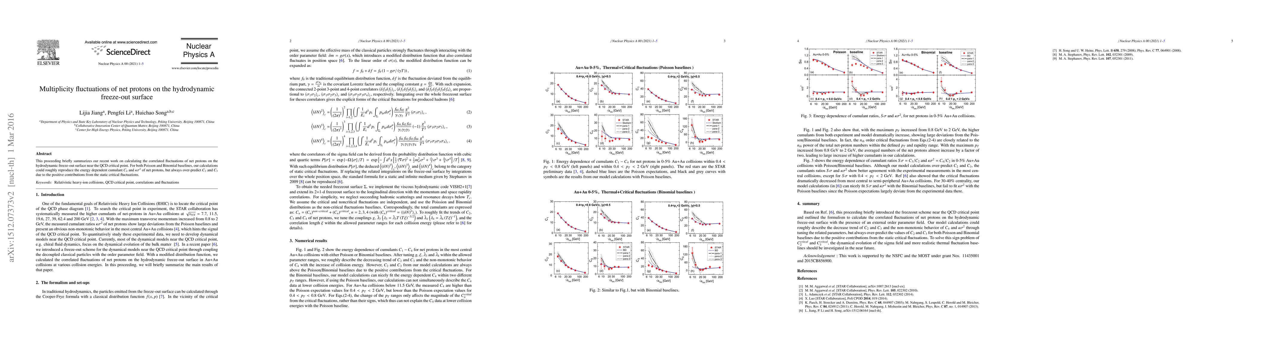 This proceeding briefly summarizes our recent work on calculating the correlated fluctuations of net protons on the hydrodynamic freeze-out surface near the QCD critical point. For both Poisson and Binomial baselines, our calculations could roughly reproduce the energy dependent cumulant $C_4$ and $\kappa \sigma^2$ of net protons, but always over-predict $C_2$ and $C_3$ due to the positive contributions from the static critical fluctuations.