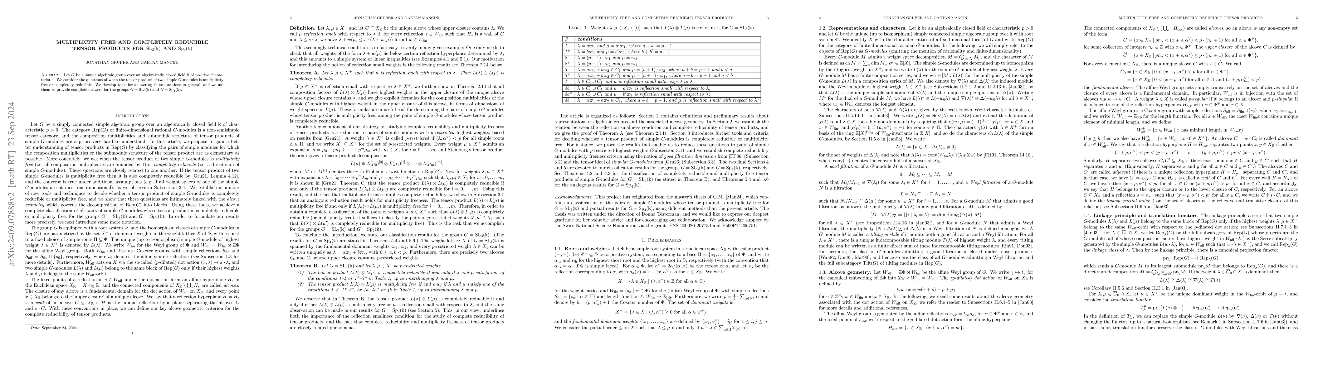 This paper develops general methods to determine when tensor products of simple modules for the groups $\mathrm{SL}_3(\Bbbk)$ and $\mathrm{Sp}_4(\Bbbk)$ are multiplicity free or completely reducible, providing complete answers for these specific groups.