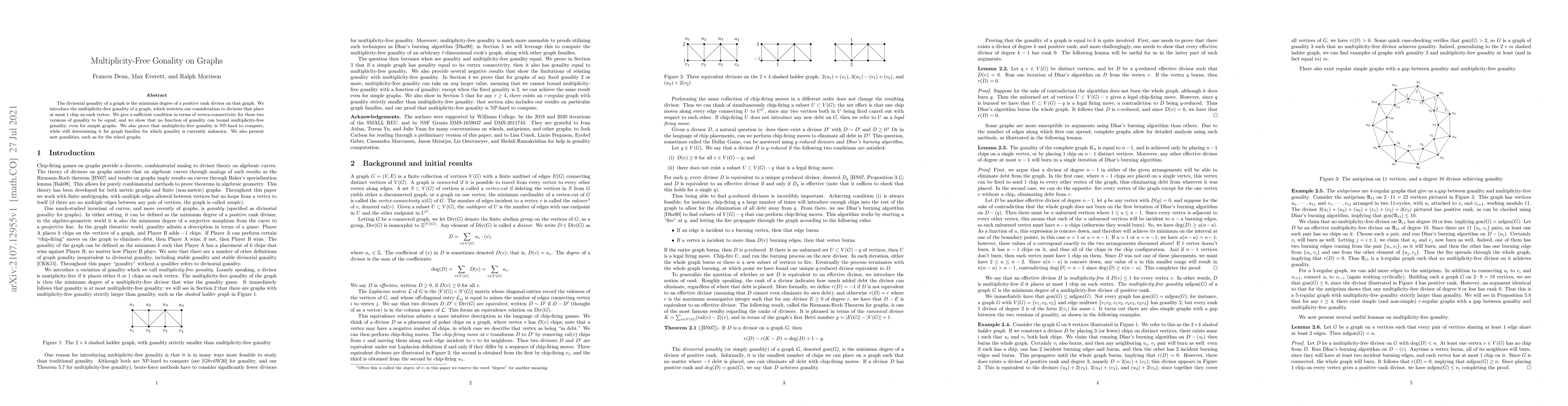 The divisorial gonality of a graph is the minimum degree of a positive rank divisor on that graph. We introduce the multiplicity-free gonality of a graph, which restricts our consideration to divisors that place at most \(1\) chip on each vertex. We give a sufficient condition in terms of vertex-connectivity for these two versions of gonality to be equal; and we show that no function of gonality can bound multiplicity-free gonality, even for simple graphs. We also prove that multiplicity-free gonality is NP-hard to compute, while still determining it for graph families for which gonality is currently unknown. We also present new gonalities, such as for the wheel graphs.