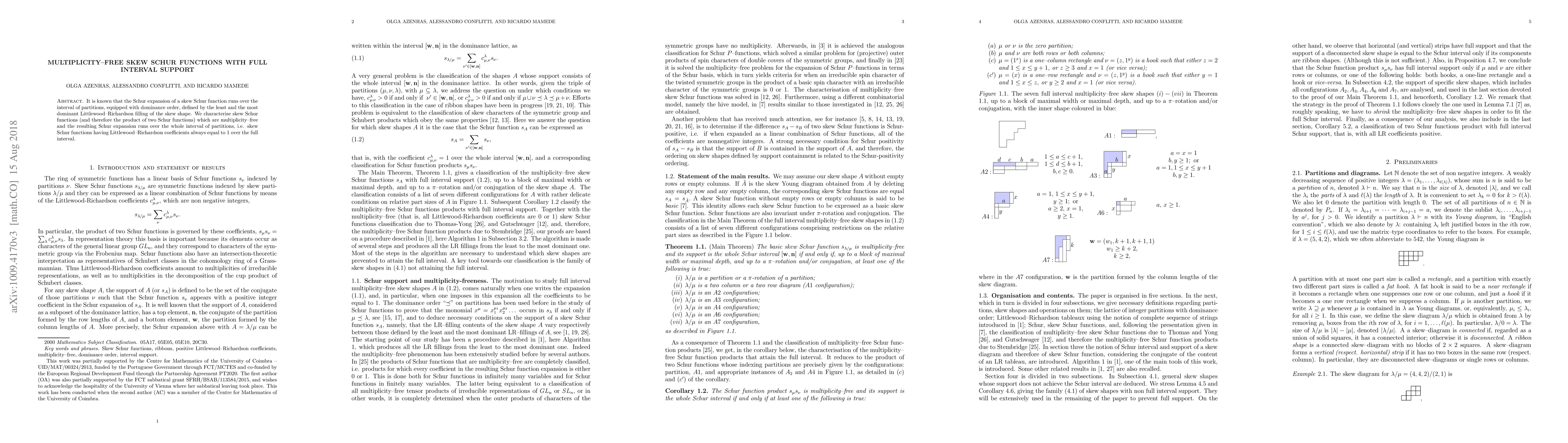 This paper characterizes skew Schur functions where the Schur expansion spans the entire interval of partitions under dominance order, resulting in Littlewood-Richardson coefficients of $1$ throughout, highlighting their multiplicity-free nature.