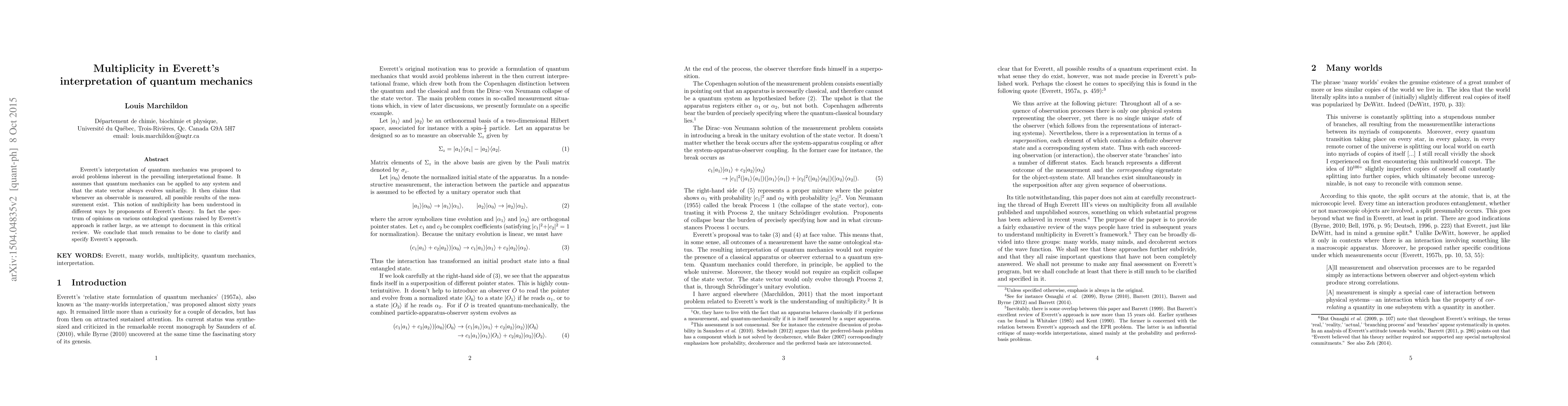 This paper critically reviews interpretations of Everett's many-worlds approach to quantum mechanics, highlighting the diverse understandings of its multiplicity concept and concluding that further clarification is needed to specify the theory's ontological implications.
