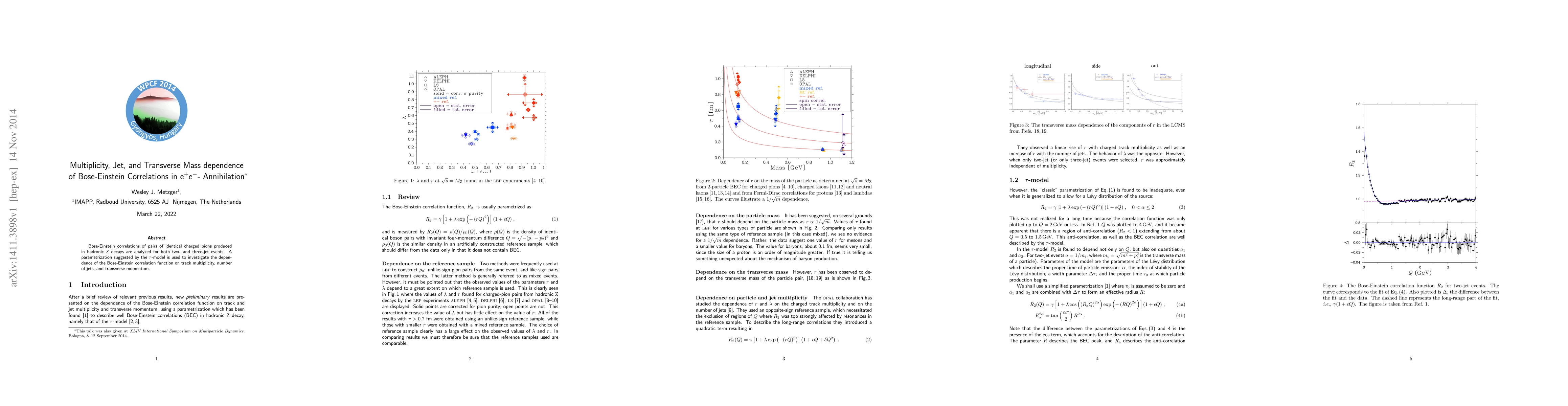 This paper analyzes Bose-Einstein correlations in pairs of identical charged pions from Z decay, focusing on two- and three-jet events, and uses a tau-model parametrization to study the correlation function's dependence on track multiplicity, jet number, and transverse momentum.