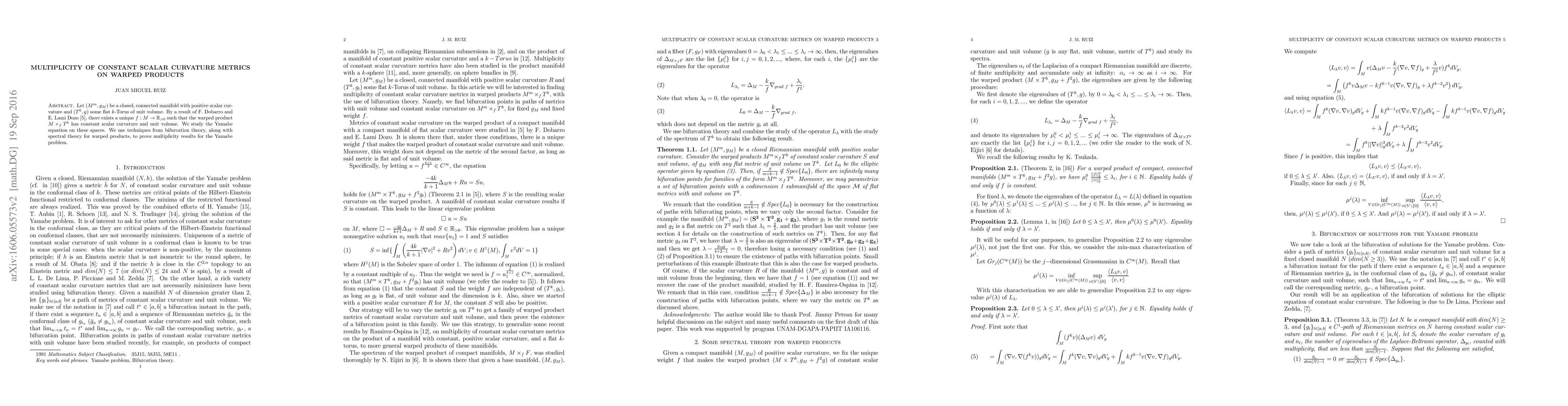This research investigates warped product spaces formed by a closed, positively curved manifold and a flat unit volume torus, proving multiplicity results for the Yamabe problem using bifurcation theory and spectral theory for warped products.