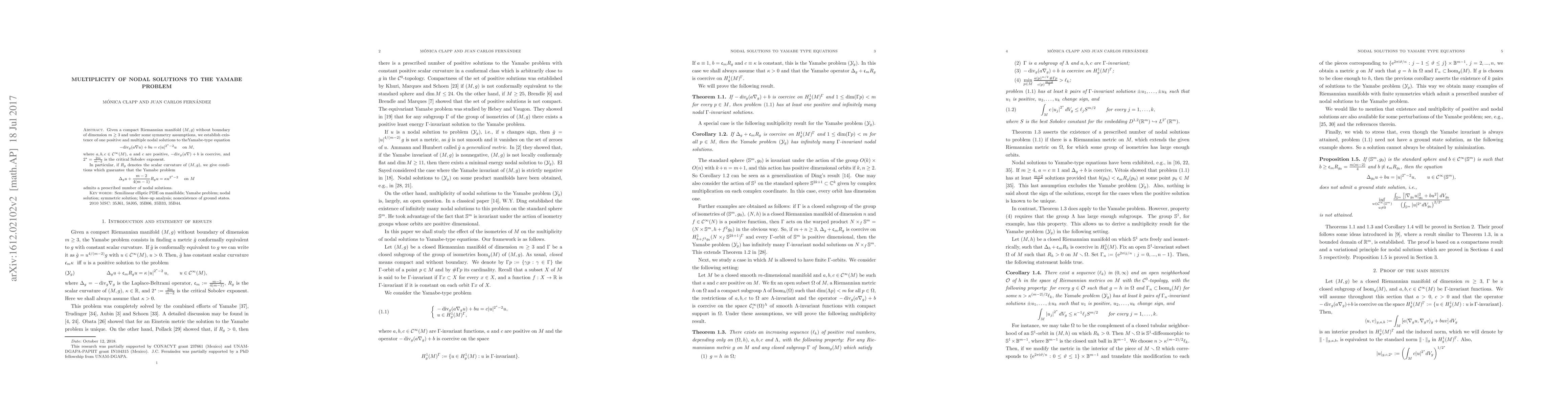 The paper introduces a detailed analysis of a Yamabe-type equation, proving the existence of nodal solutions using concentration-compactness methods and establishing conditions for prescribed nodal solutions.