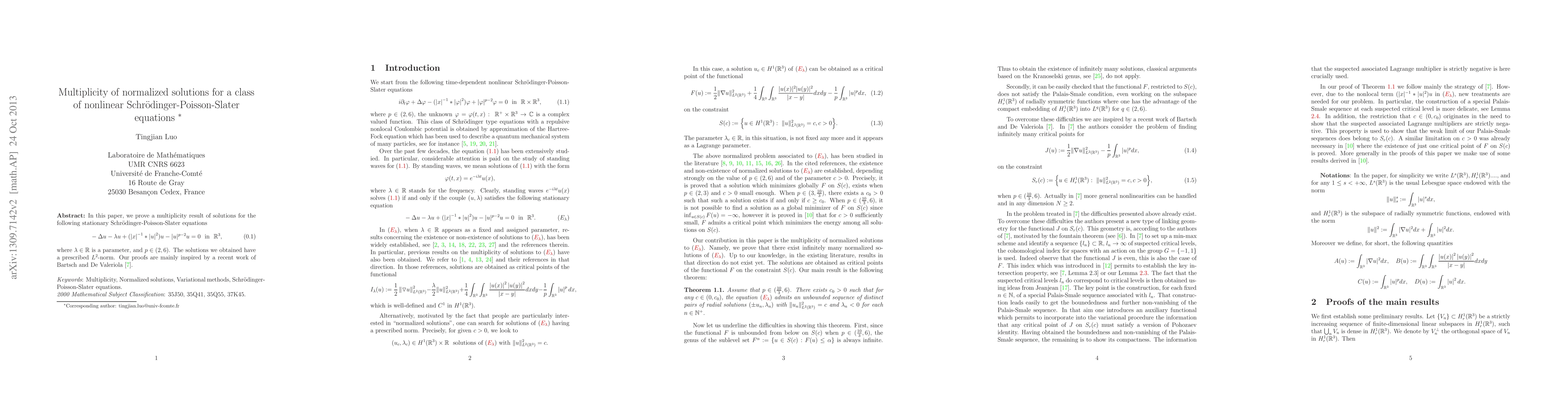 In this paper, we prove a multiplicity result of solutions for the following stationary Schr\"odinger-Poisson-Slater equations \begin{equation}\label{eq-abstract} -\Delta u - \lambda u + (\left | x \right |^{-1}\ast \left | u \right |^2) u - |u|^{p-2}u = 0 \ \mbox{ in } \ \mathbb{R}^{3}, \end{equation} where $\lambda\in \R$ is a parameter, and $p\in (2,6)$. The solutions we obtained have a prescribed $L^2$-norm. Our proofs are mainly inspired by a recent work of Bartsch and De Valeriola [7].